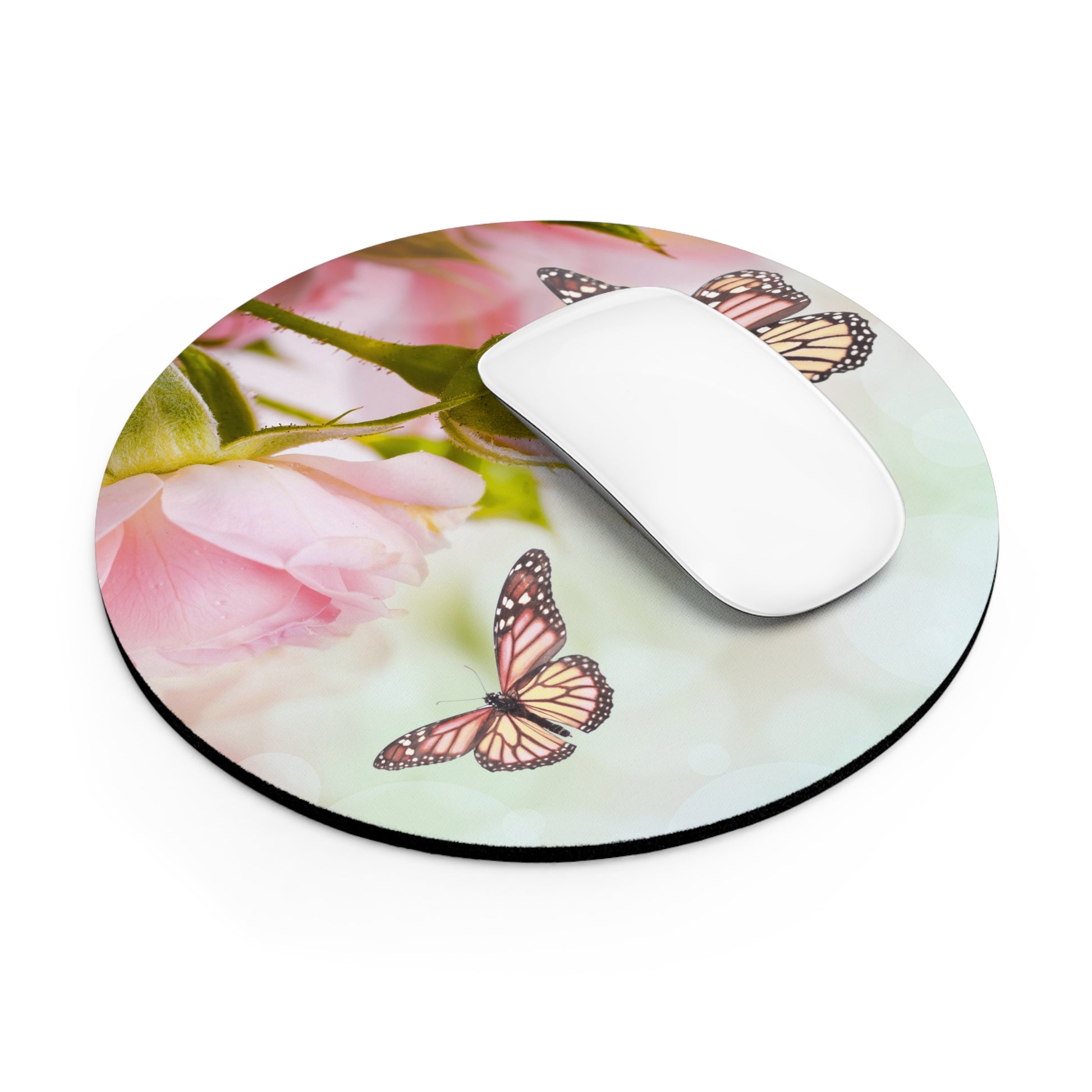 Butterfly Blossom Mouse Pad, Floral Desk Accessory, Computer Mat, Gift for Nature Lovers, Elegant Office Decor