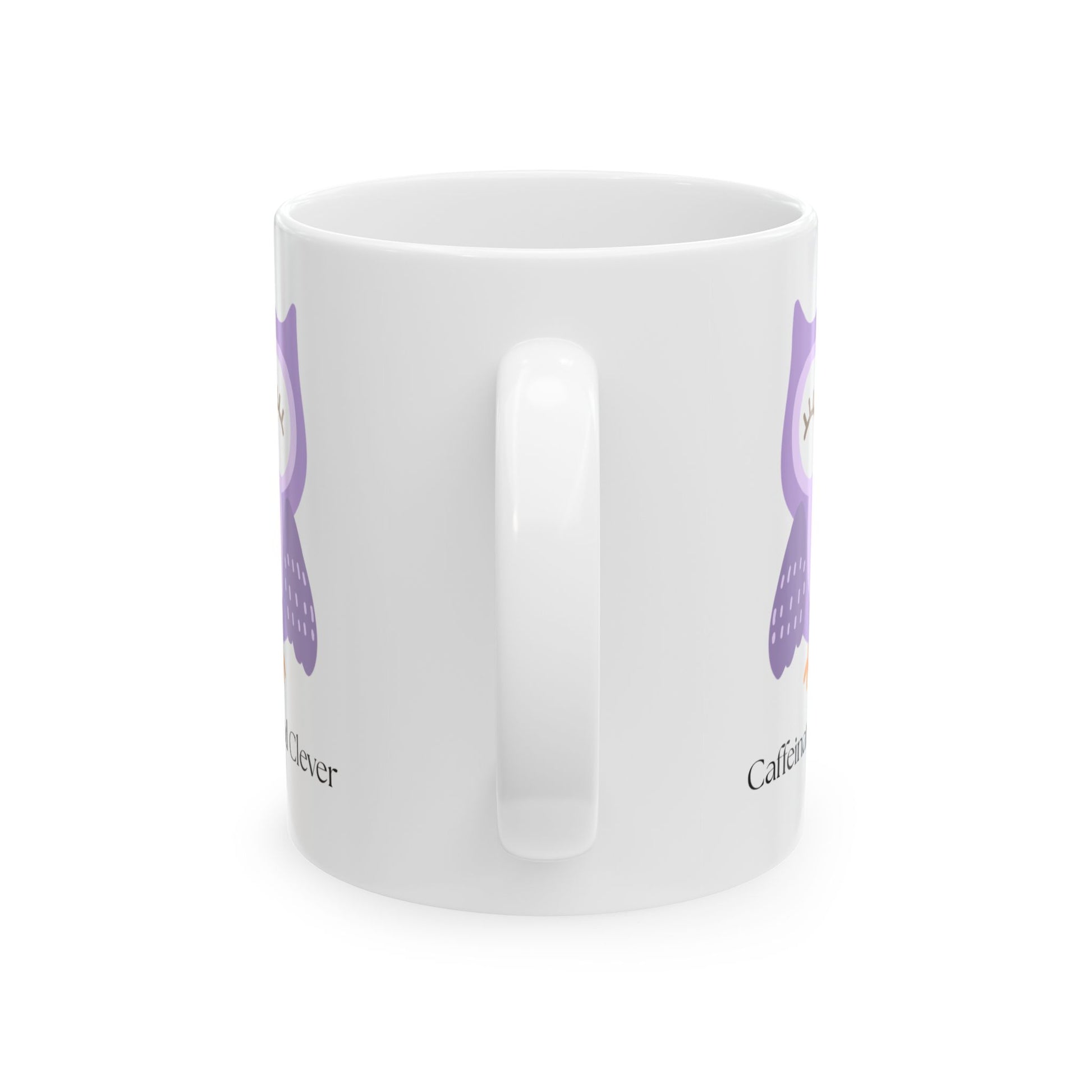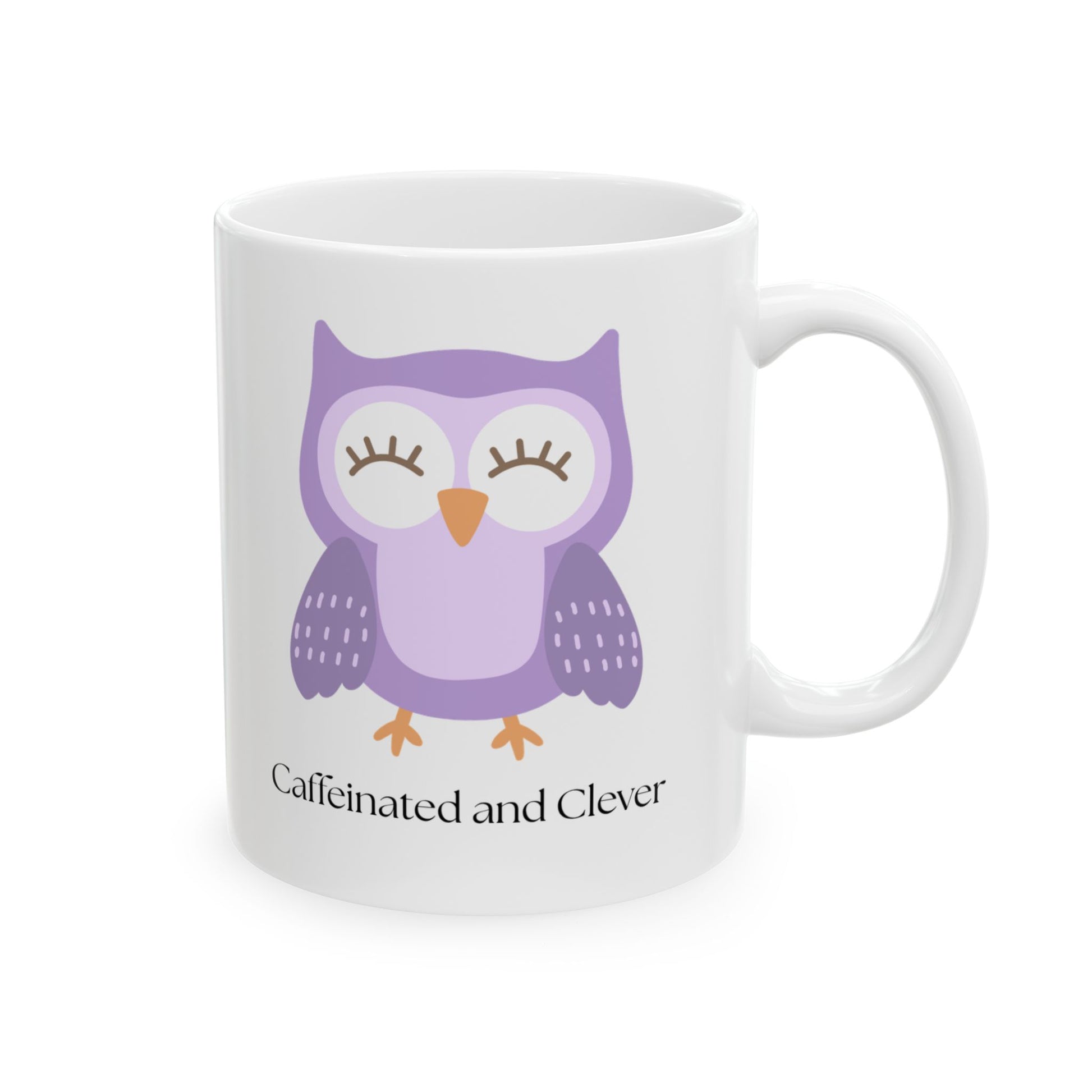 Caffeinated and Clever Mug, Cute Purple Owl Coffee Cup, Ceramic Mug for Book Lovers & Owl Fans