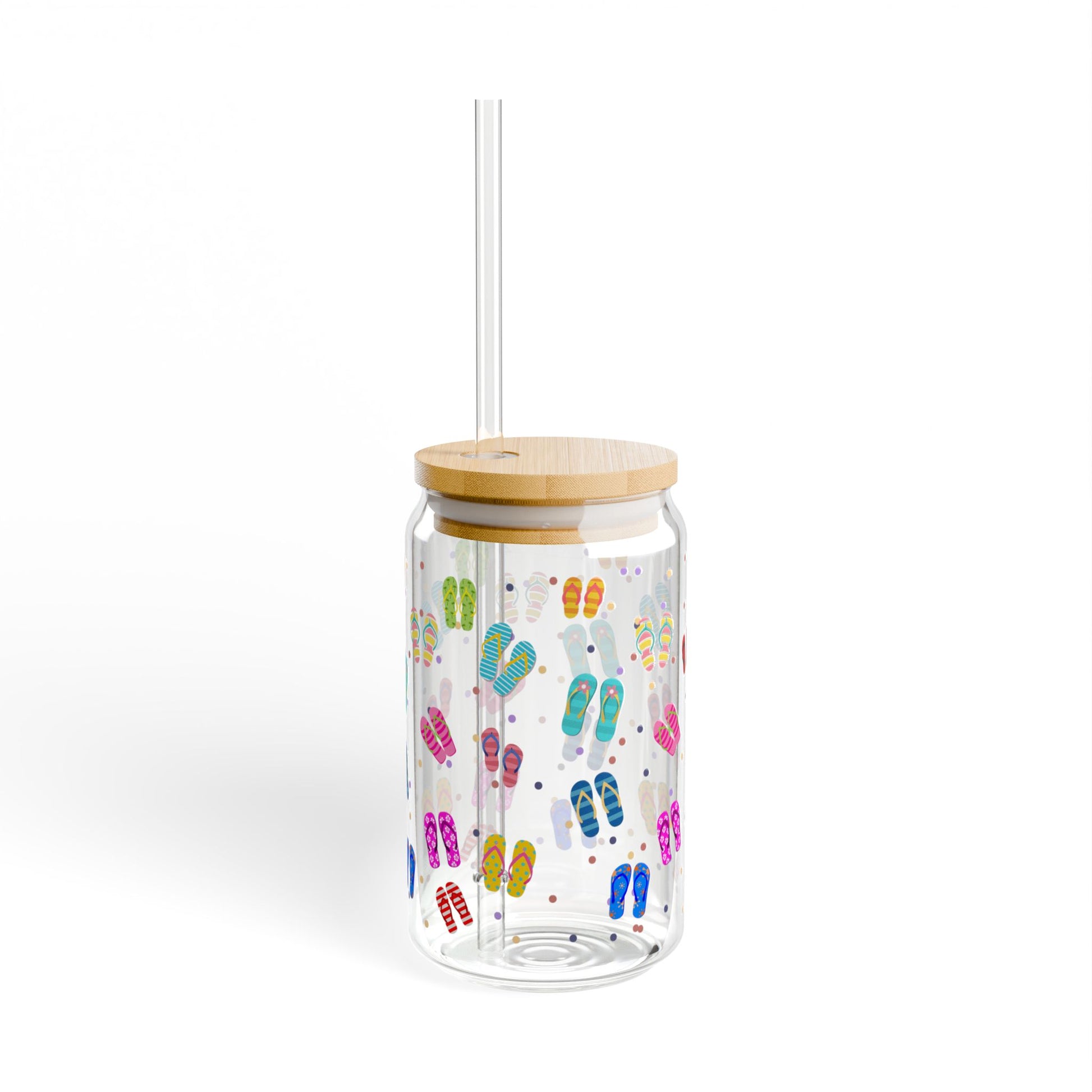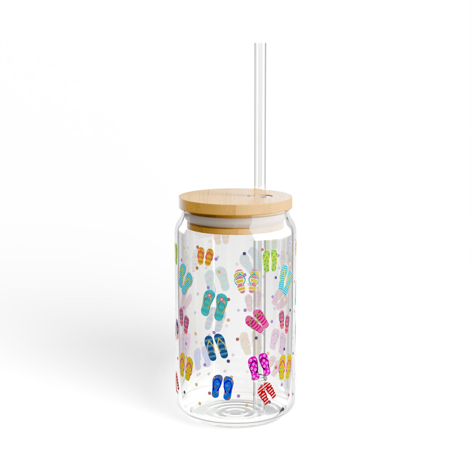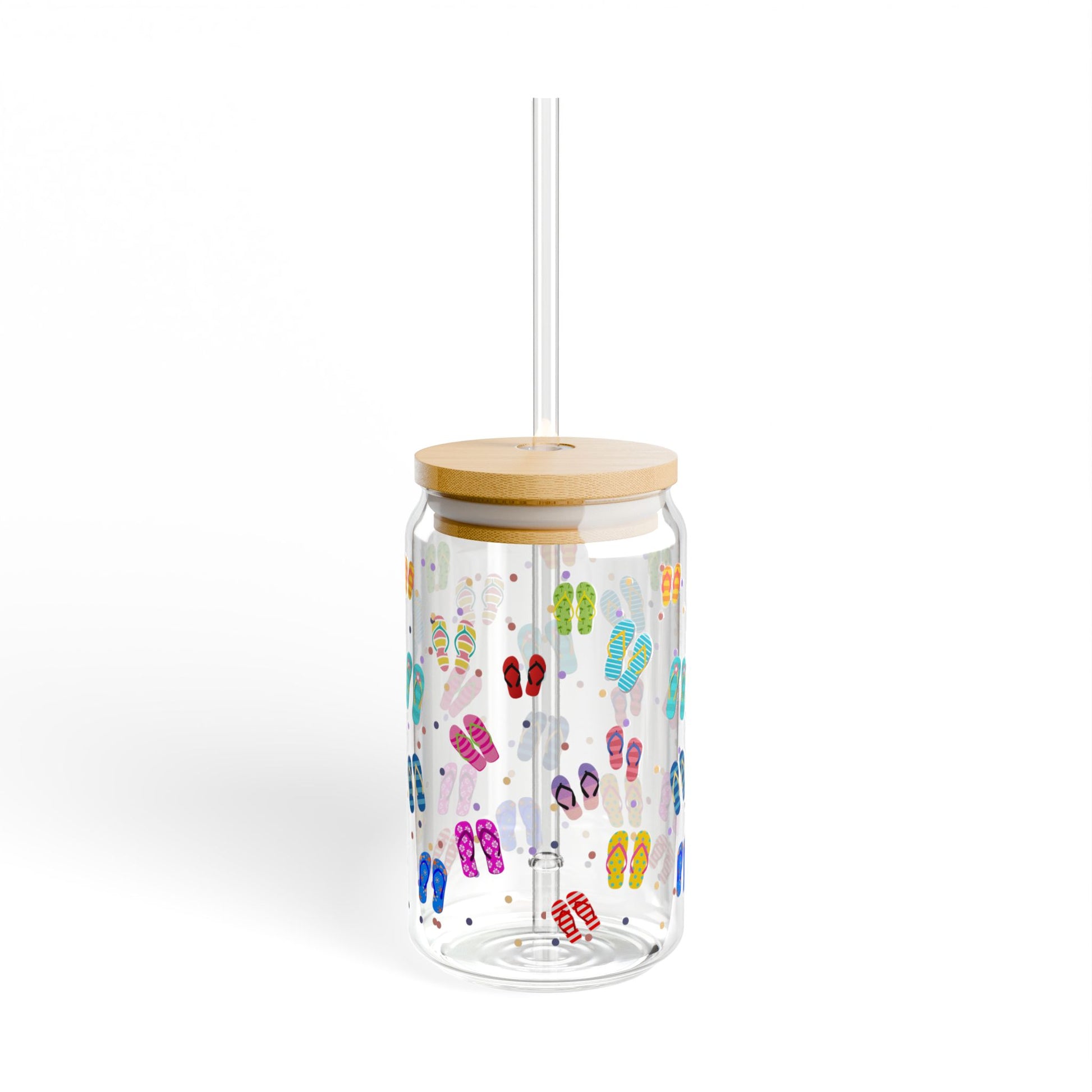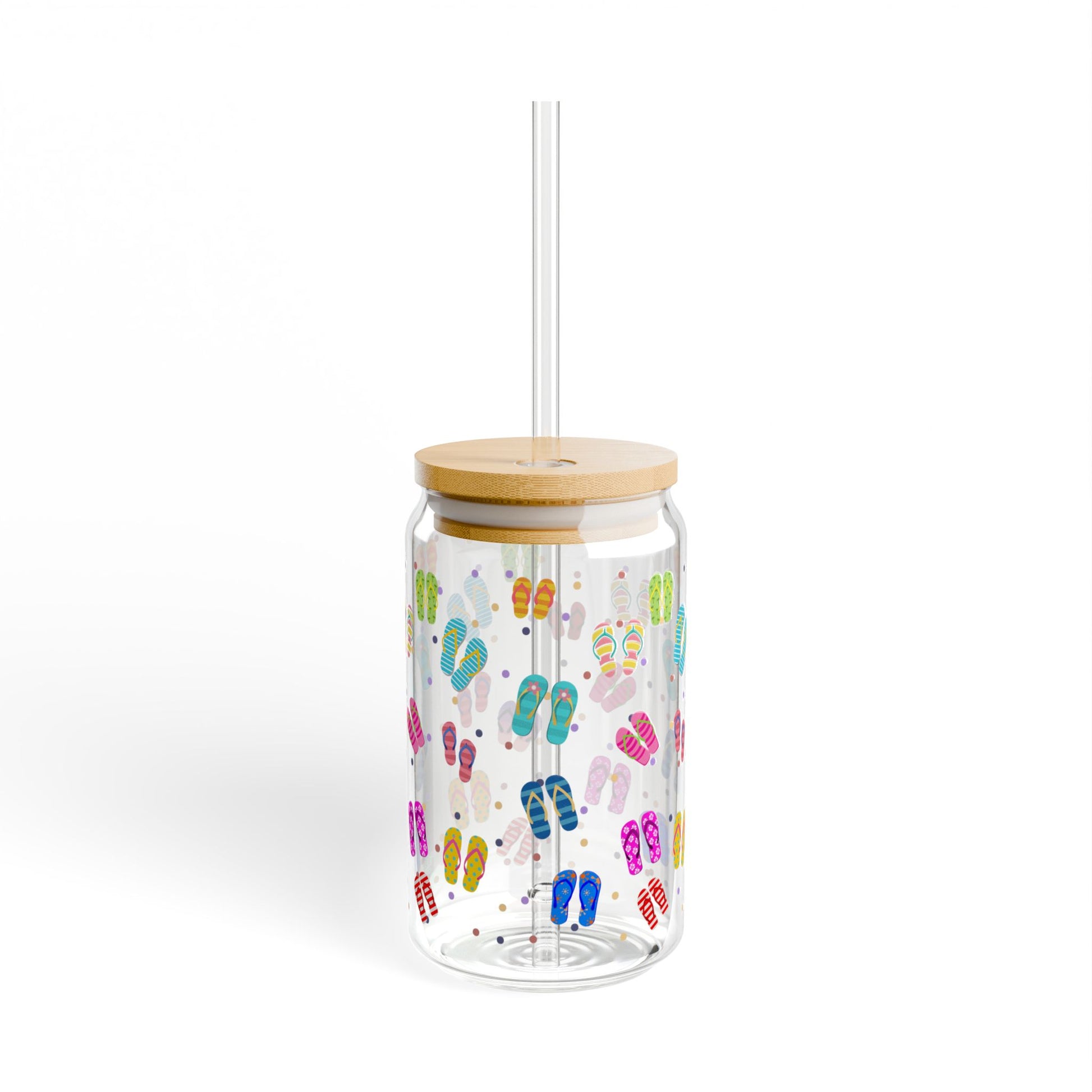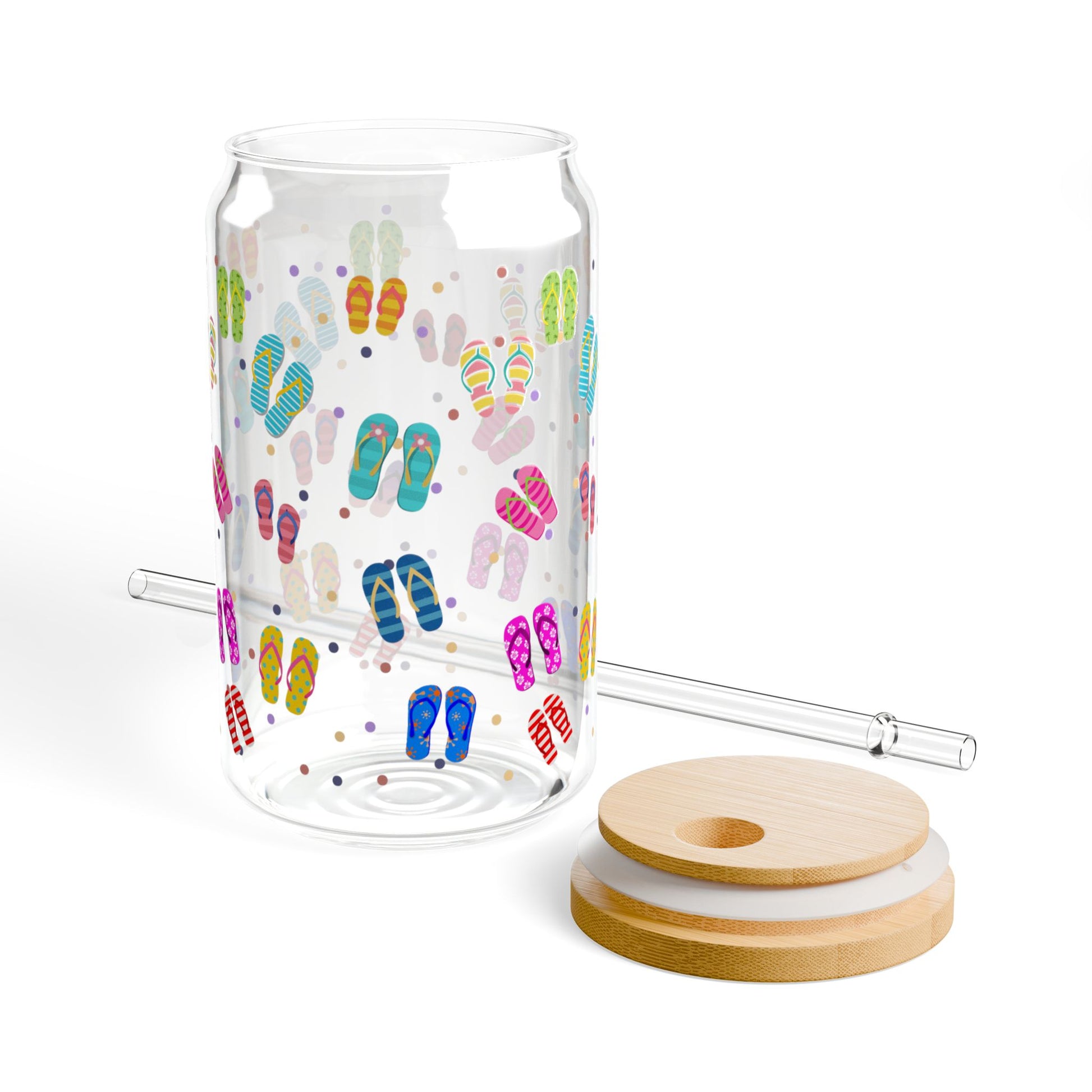 Colorful Flip Flop Sipper Glass - 16oz, Fun Drinkware, Summer Vibes, Pool Party Essential, Beach-Themed Gift, Unique Beverage Container