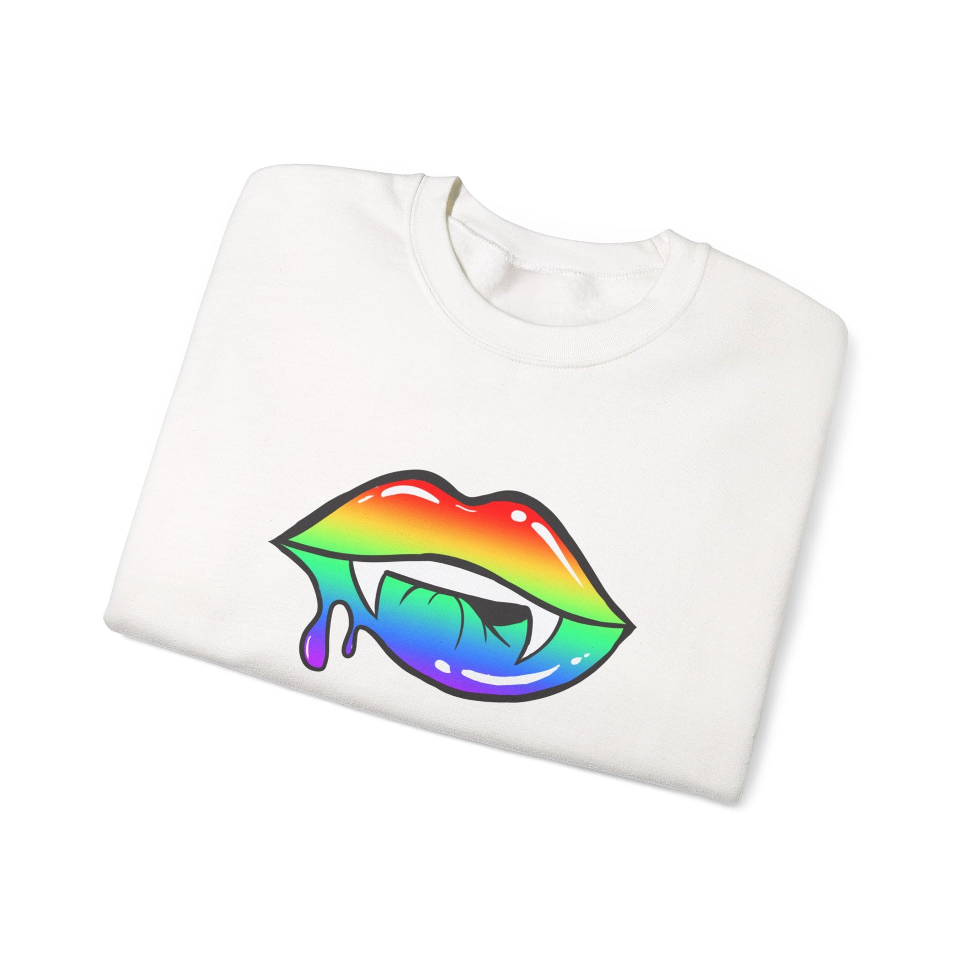 Colorful Vampire Fangs Crewneck Sweatshirt, Halloween Party Apparel, Spooky Fall Fashion, Unisex Sweatshirt, Halloween Sweatshirt,