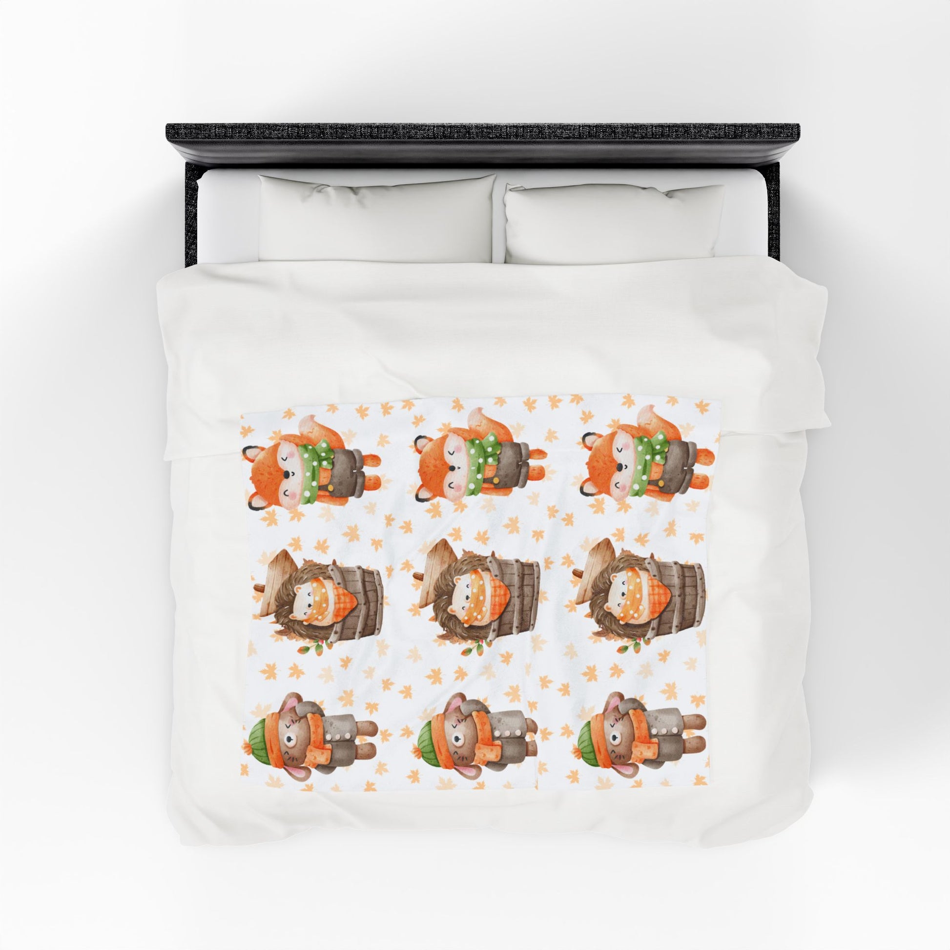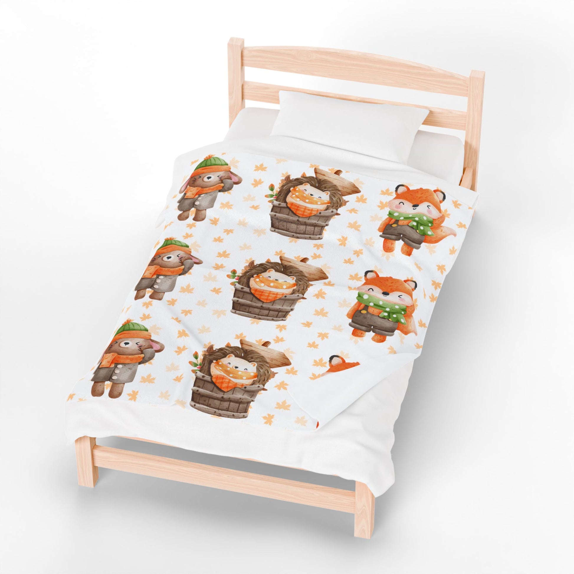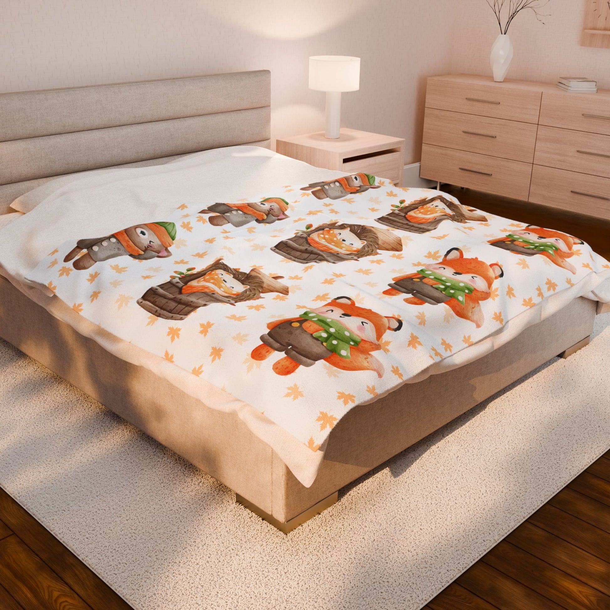 Cozy Woodland Animals Velveteen Plush Blanket | Cute Forest Creatures, Warm Throw for Kids, Nursery Décor, Fall Gift