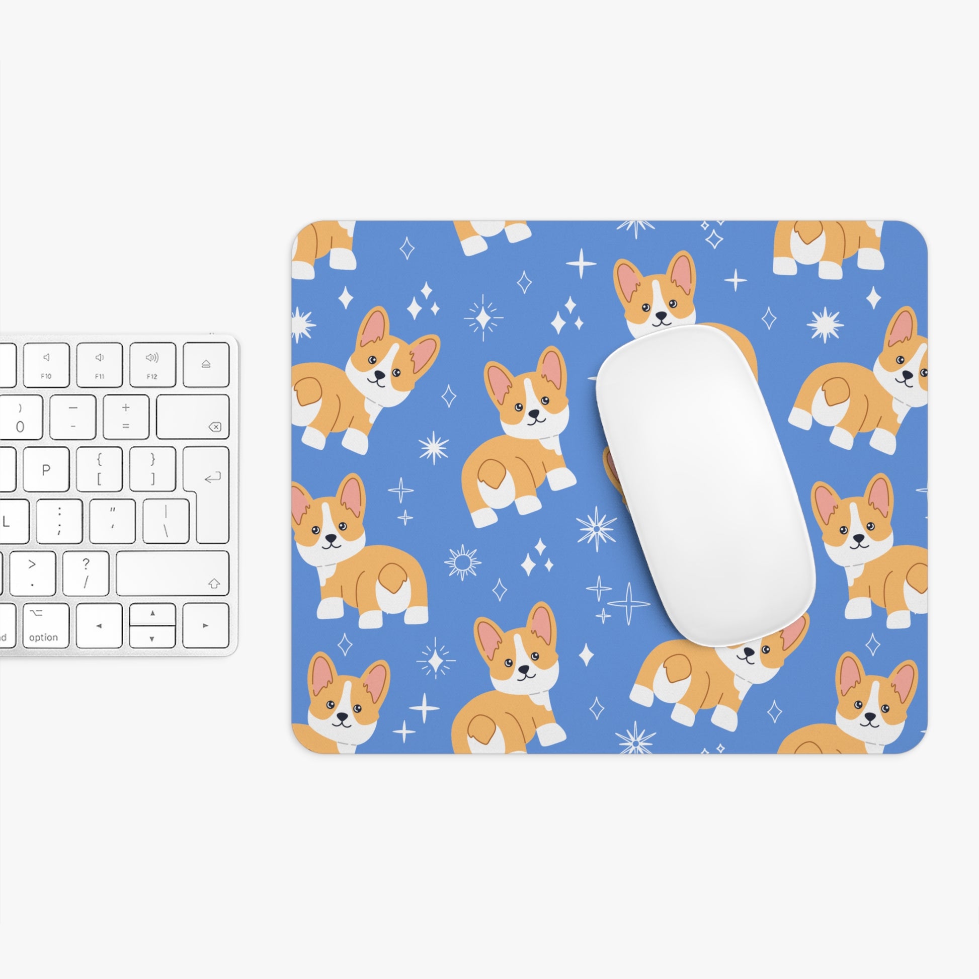đ¶ Product Description: Add a dose of dog-loving charm to your workspace with this Corgi Mouse Pad! Featuring an adorable corgi graphic on a calming blue background, itâs the perfect way to make your desk a little brighter and a lot cuter. Whether youâre working from home, gaming, or just scrolling through your favorite pet photos, this mouse pad keeps things comfortable and stylish. Perfect for: Corgi owners & dog lovers Home offices or workplace desks Birthday, holiday, or coworker gifts Students and gamers who love fun desk accessories Work may be serious, but your desk doesnât have to beâlet this cheerful corgi keep you company all day long! đŸ
