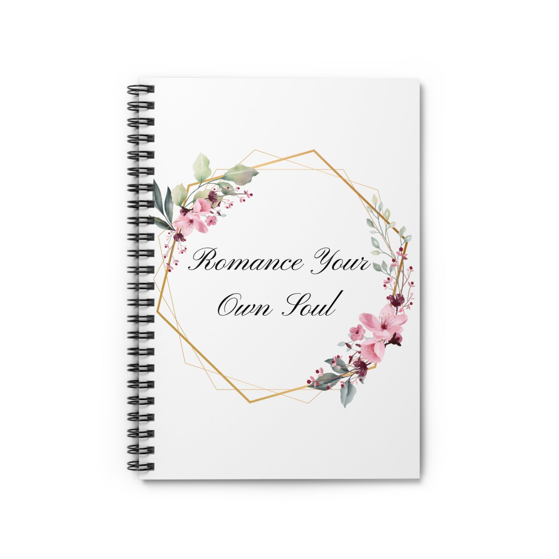 Floral Spiral Notebook - "Romance Your Own Soul" | Cute Journal, Gift for Writers, Creative Notepad, Motivational Planner, Floral Stationery