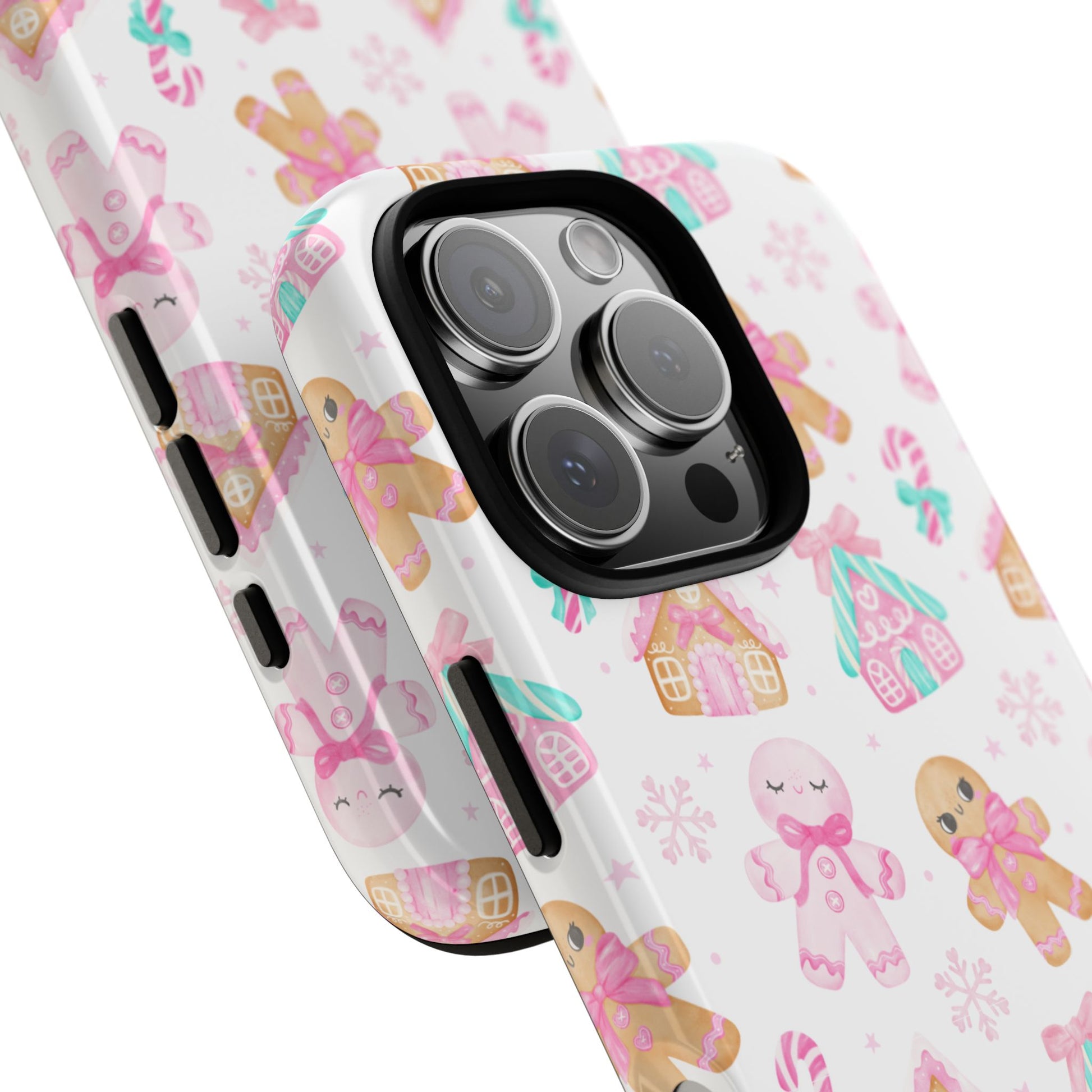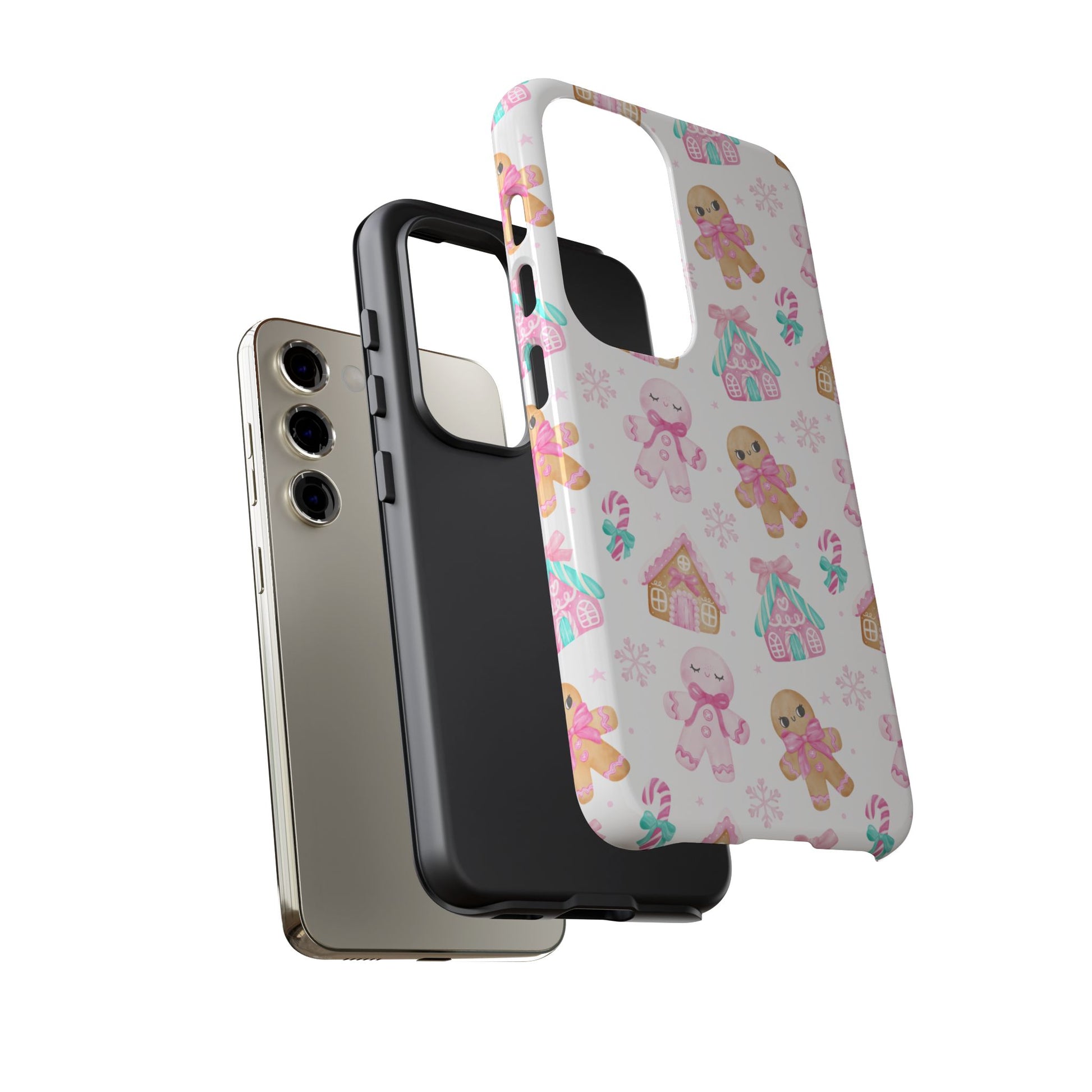 Sweeten up your phone for the season with this adorable pink gingerbread-themed phone case! Featuring candy canes, gingerbread cookies, and pastel houses, it’s the perfect mix of festive and fun. Made to fit iPhone, Samsung, and Pixel models, this case keeps your phone protected while spreading cozy holiday cheer.