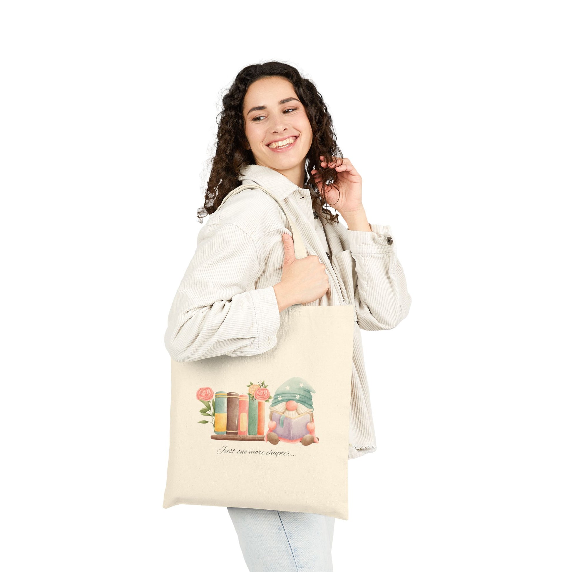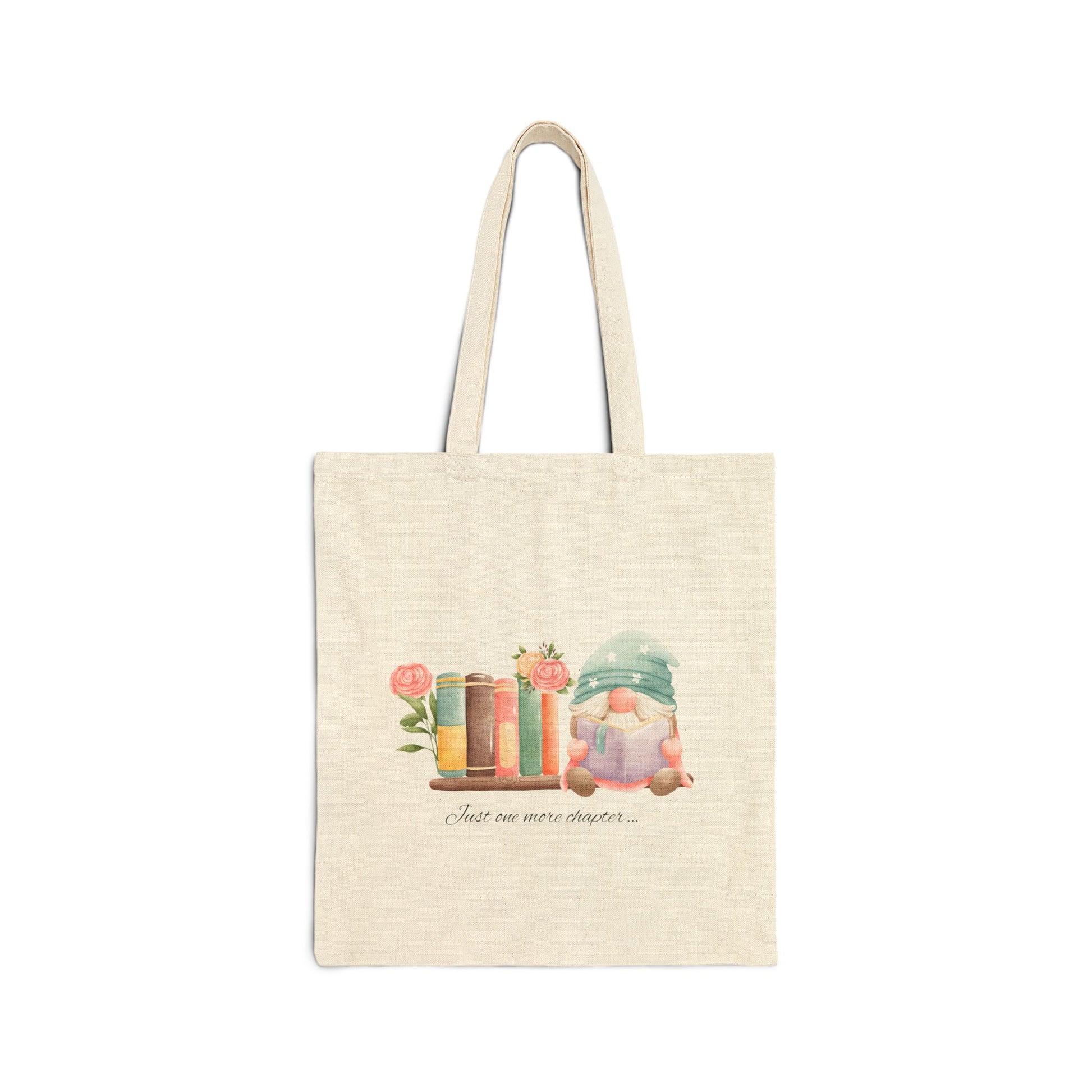Just One More Chapter Gnome Book Lover Canvas Tote Bag, Eco-Friendly Shopping, Gifts for Readers, Mother's Day, Book Clubs