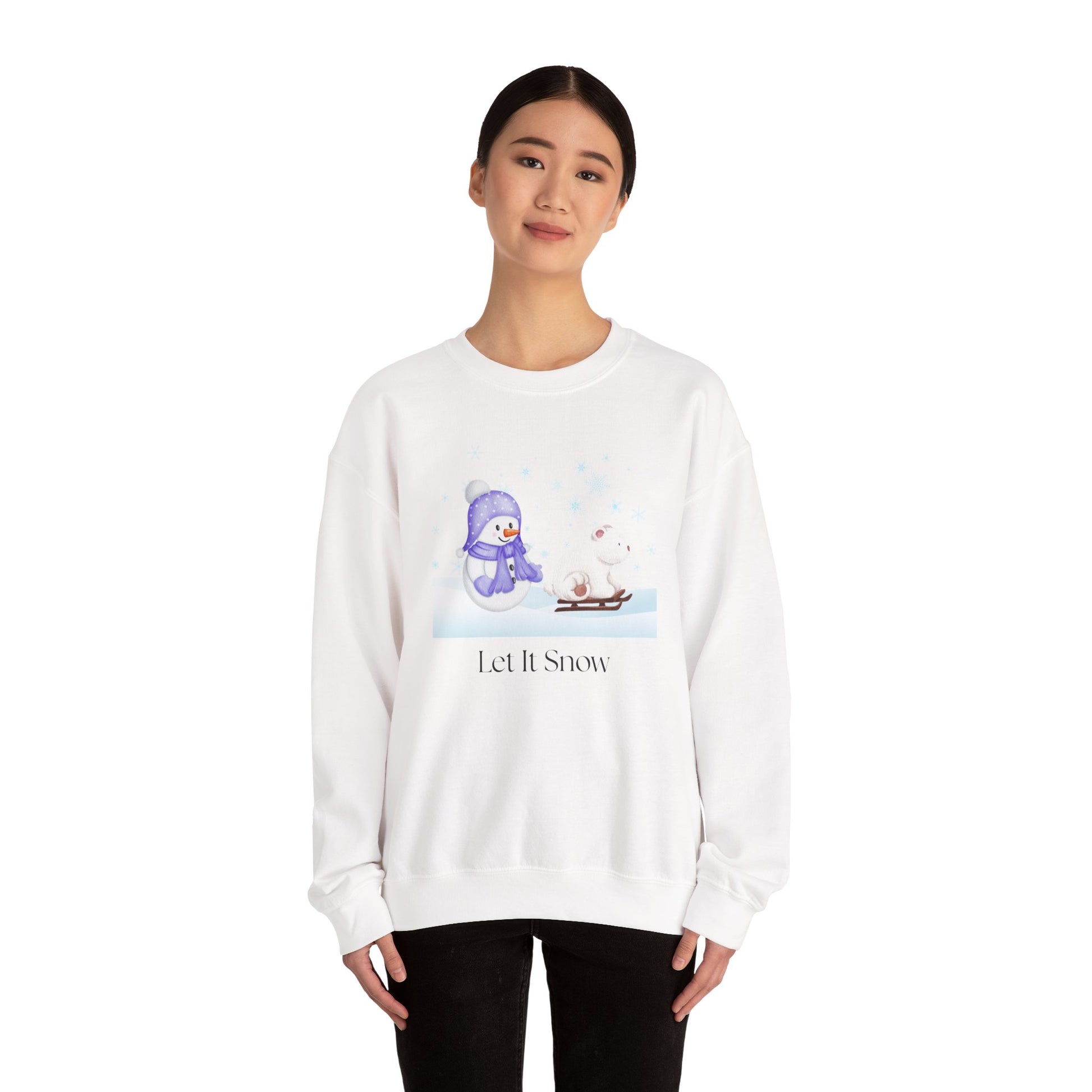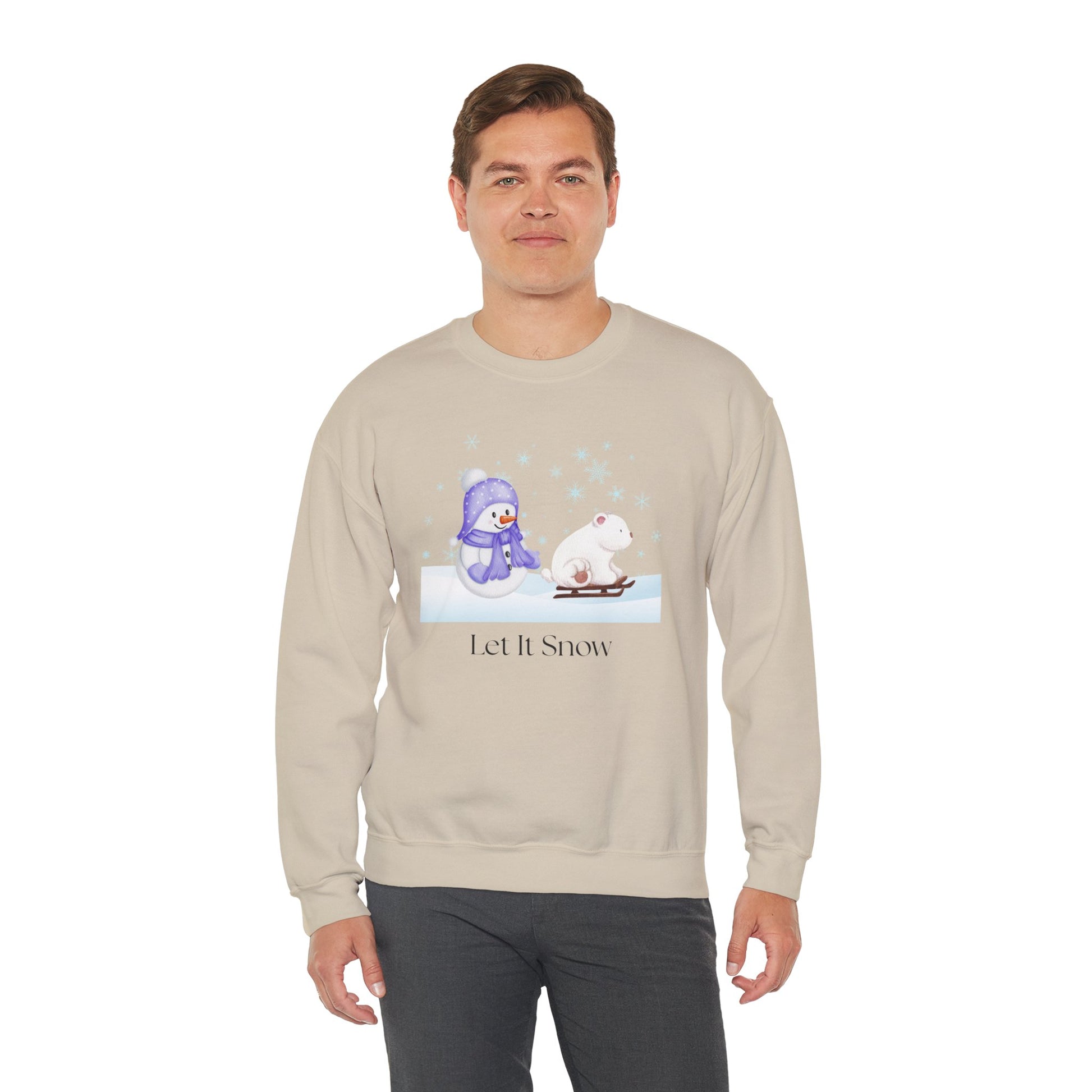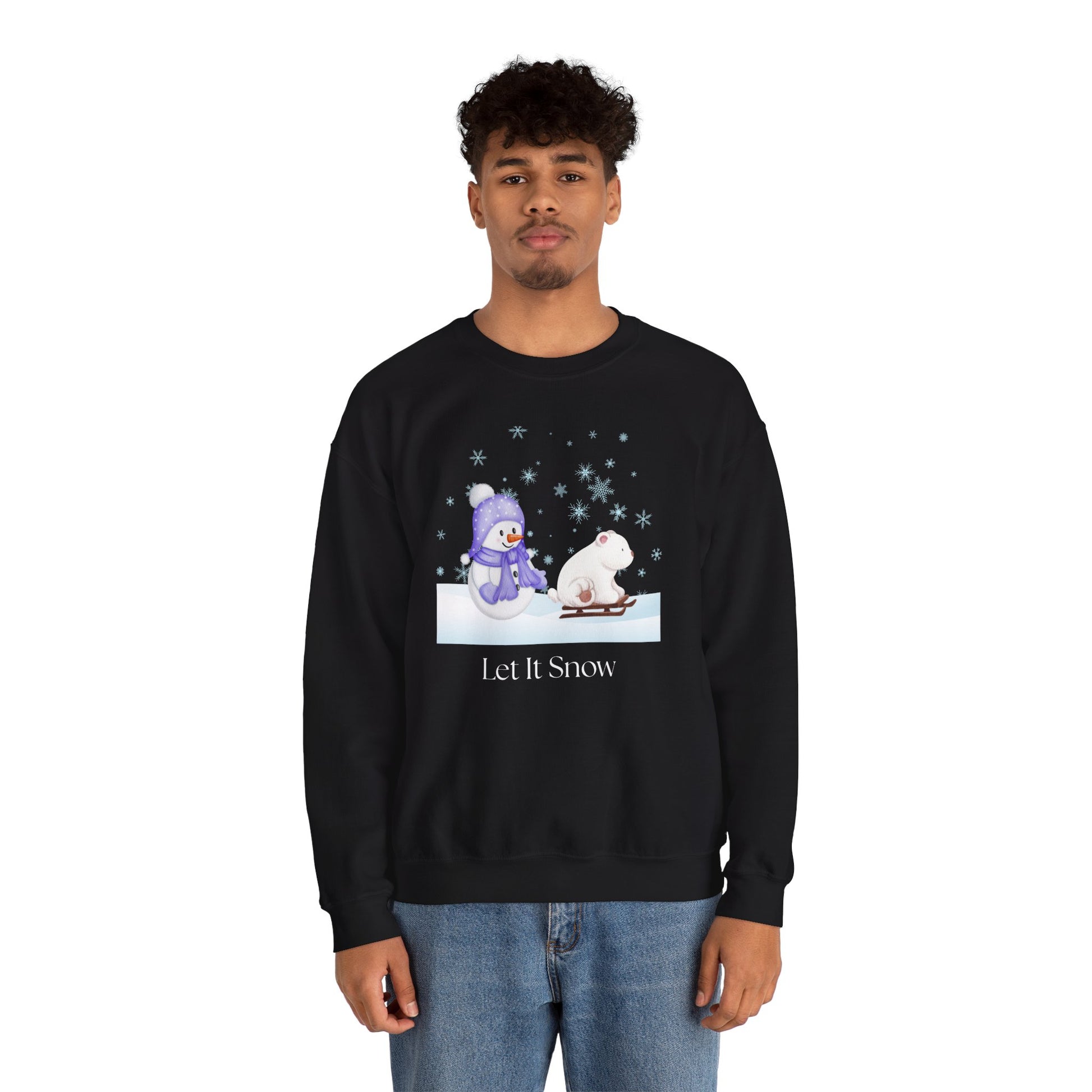 Let It Snow Sweatshirt, Cute Snowman and Polar Bear Winter Scene | Cozy Holiday Crewneck for Christmas an Winter Lovers