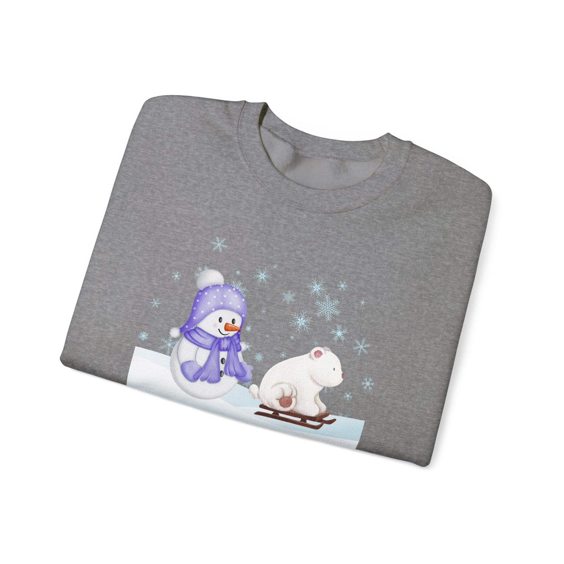 Embrace the magic of winter with this cozy Unisex Heavy Blend™ Crewneck Sweatshirt, featuring a heartwarming snow scene of a cheerful snowman and an adorable polar bear with the words "Let It Snow." Perfect for adding a playful, festive touch to your cold-weather wardrobe, this sweatshirt is a must-have for holiday lovers, snow-day dreamers, and anyone who can’t resist a cute winter vibe. Whether you're sipping hot cocoa, enjoying a movie night, or heading to a seasonal celebration, this sweatshirt brings the warmth and charm of winter wherever you go. Its soft cotton-poly blend and relaxed fit make it ideal for everyday wear, gifting, or simply snuggling up in style.