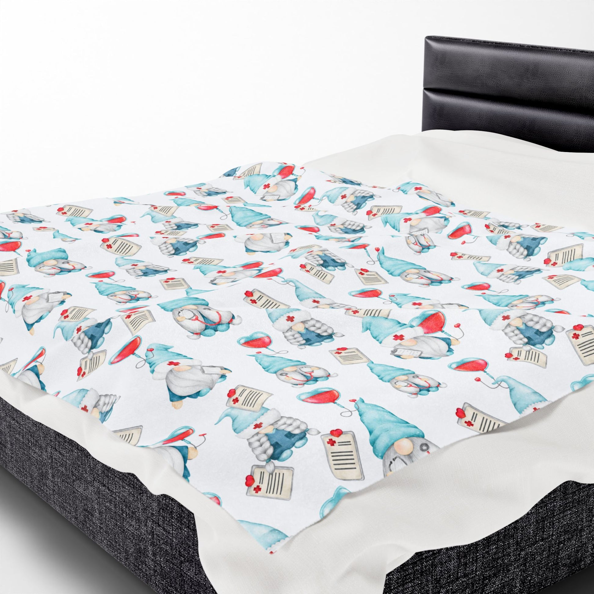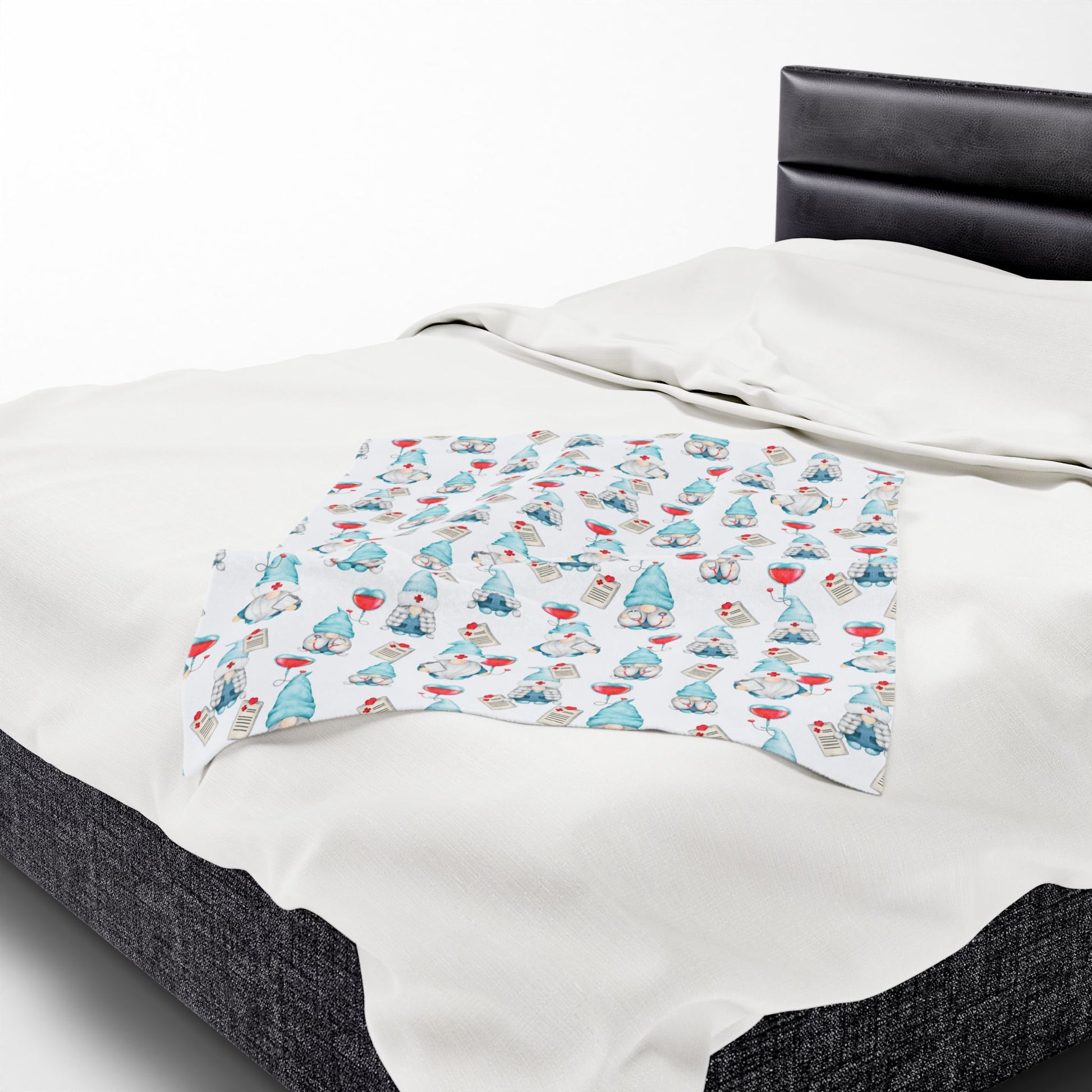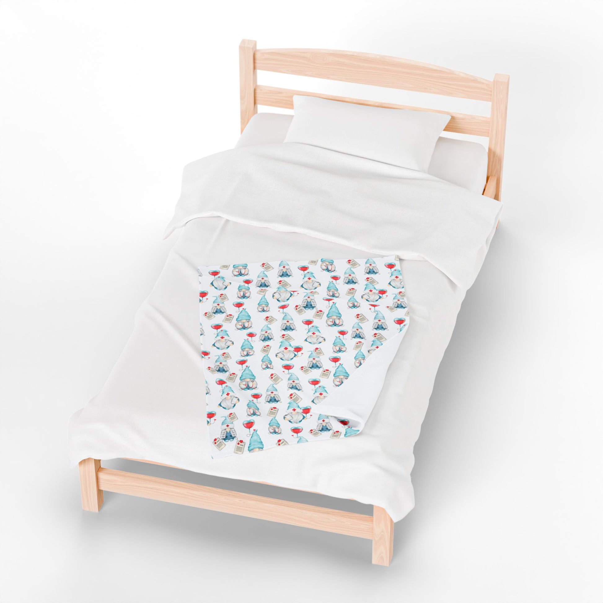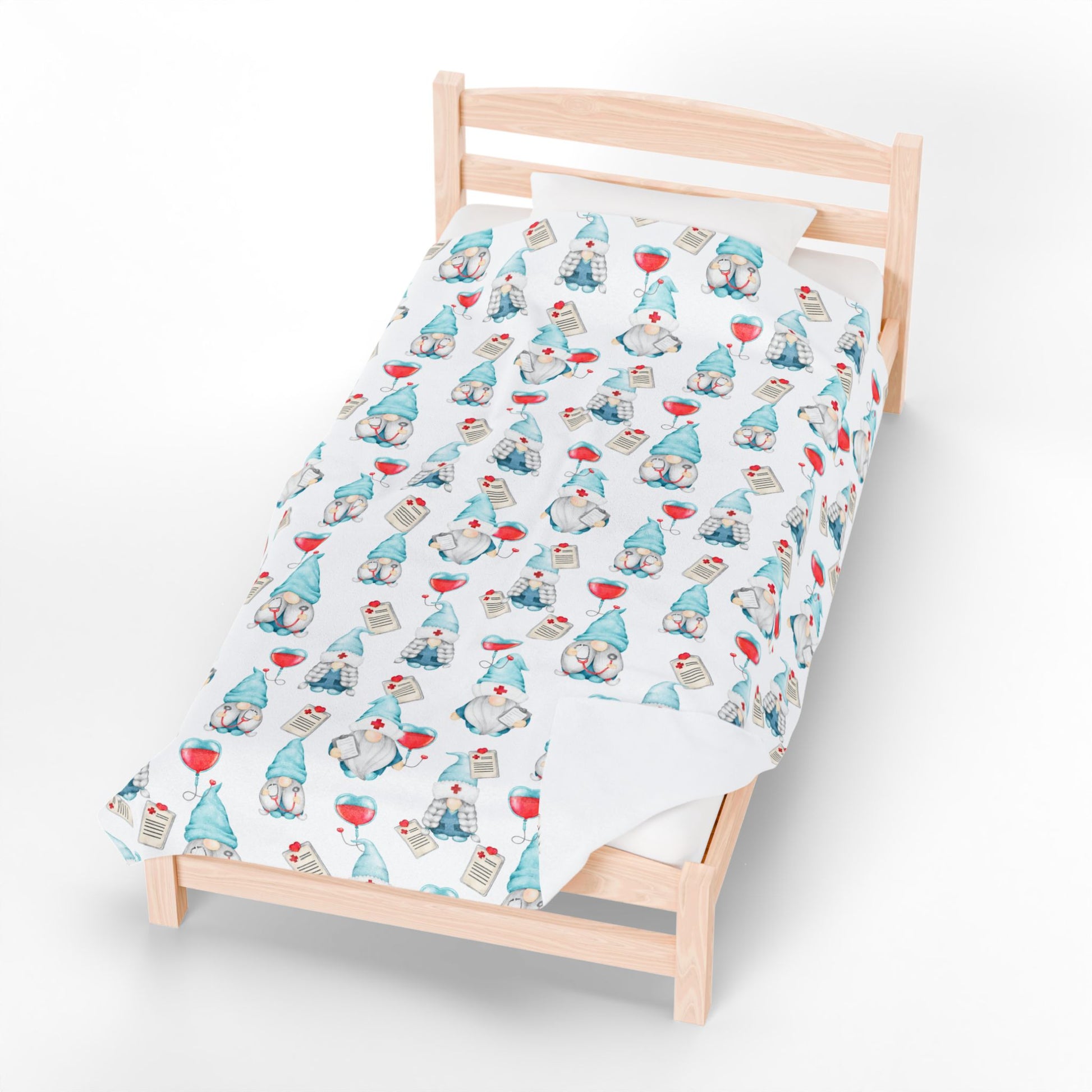 Medical Gnome Velveteen Plush Blanket, Blue Gnome Throw for Nurses, Doctors, Healthcare Workers, Cozy Gift for Medical Professionals