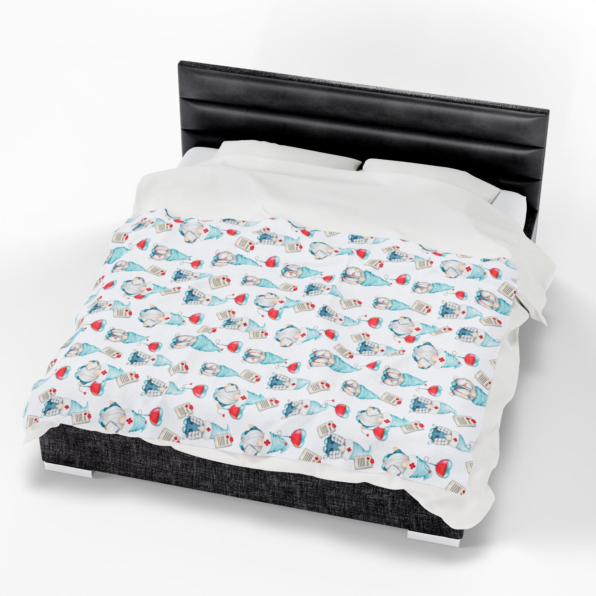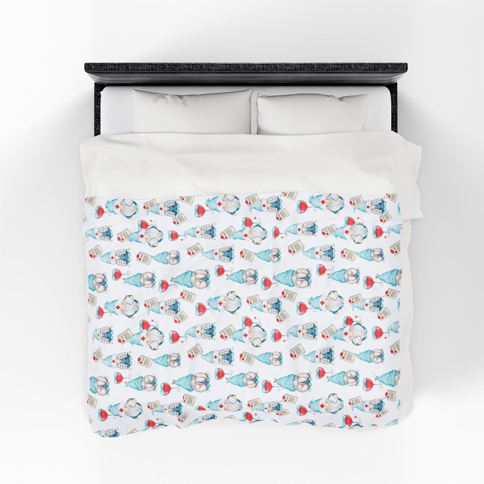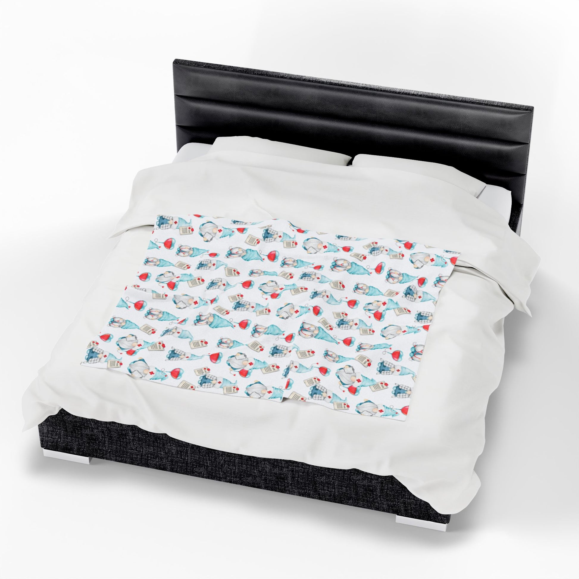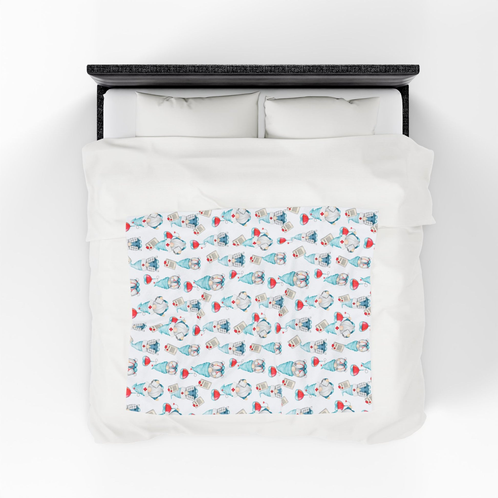 Medical Gnome Velveteen Plush Blanket, Blue Gnome Throw for Nurses, Doctors, Healthcare Workers, Cozy Gift for Medical Professionals