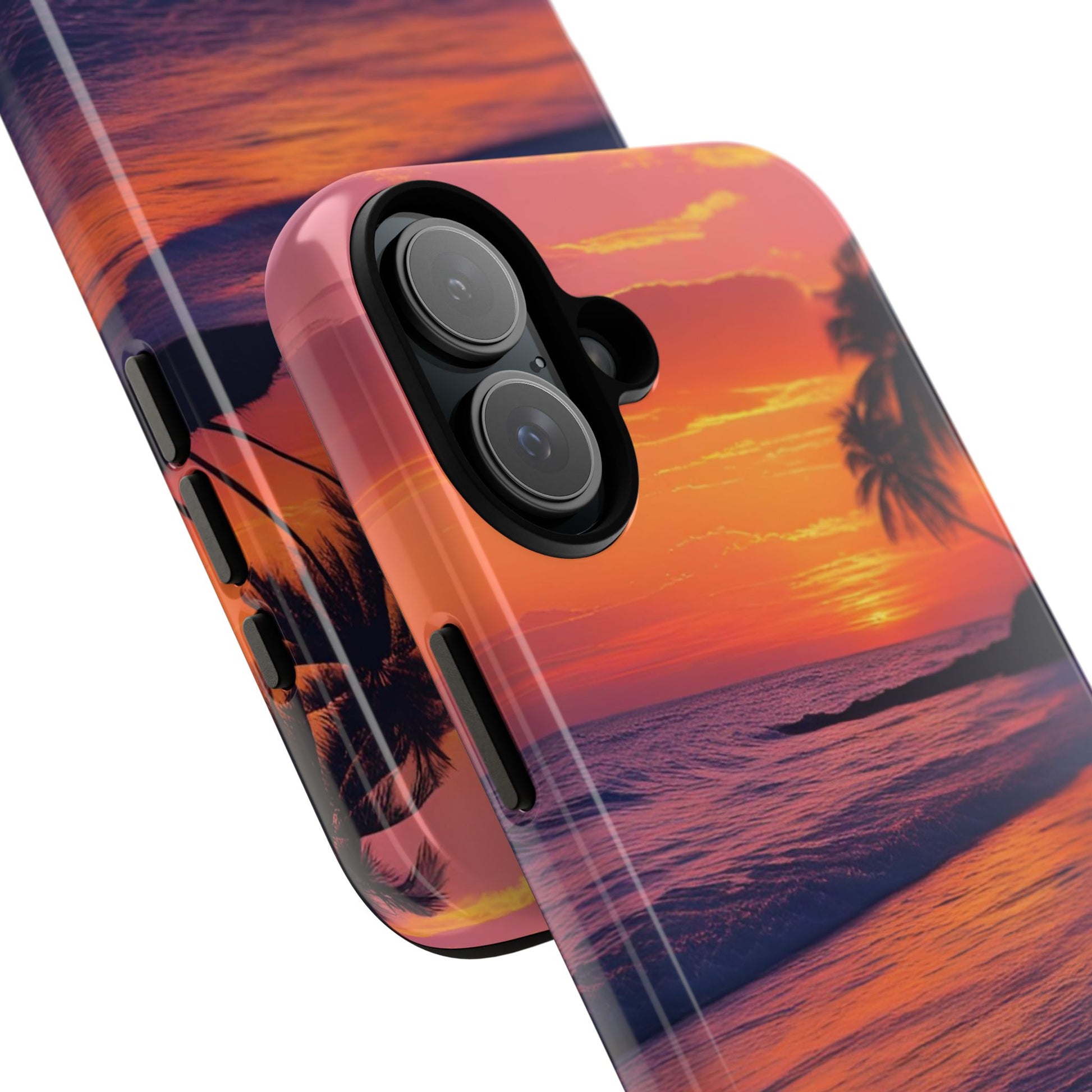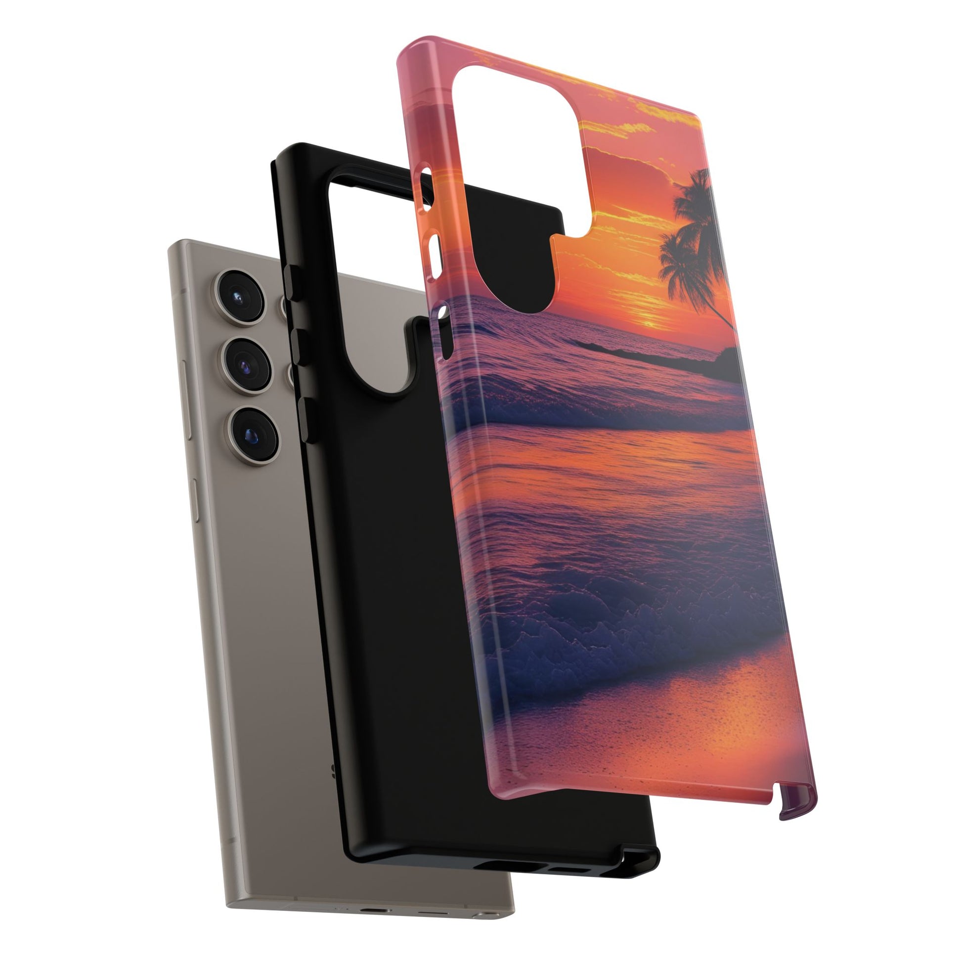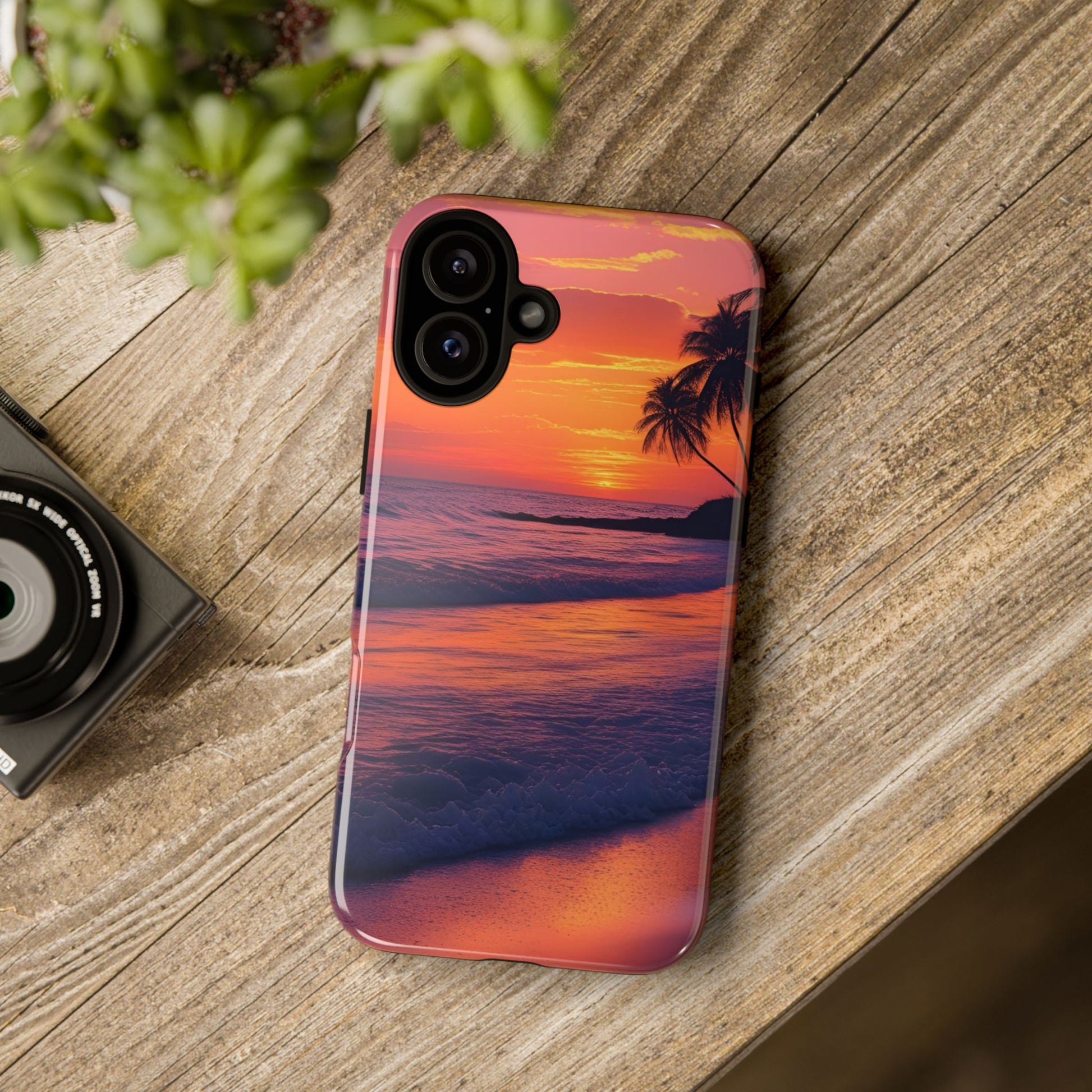Carry a piece of paradise with you everywhere you go with our Sunset Beach Phone Case. Featuring a breathtaking tropical sunset with glowing skies, swaying palm trees, and gentle ocean waves, this case captures the peaceful beauty of golden hour by the shore.