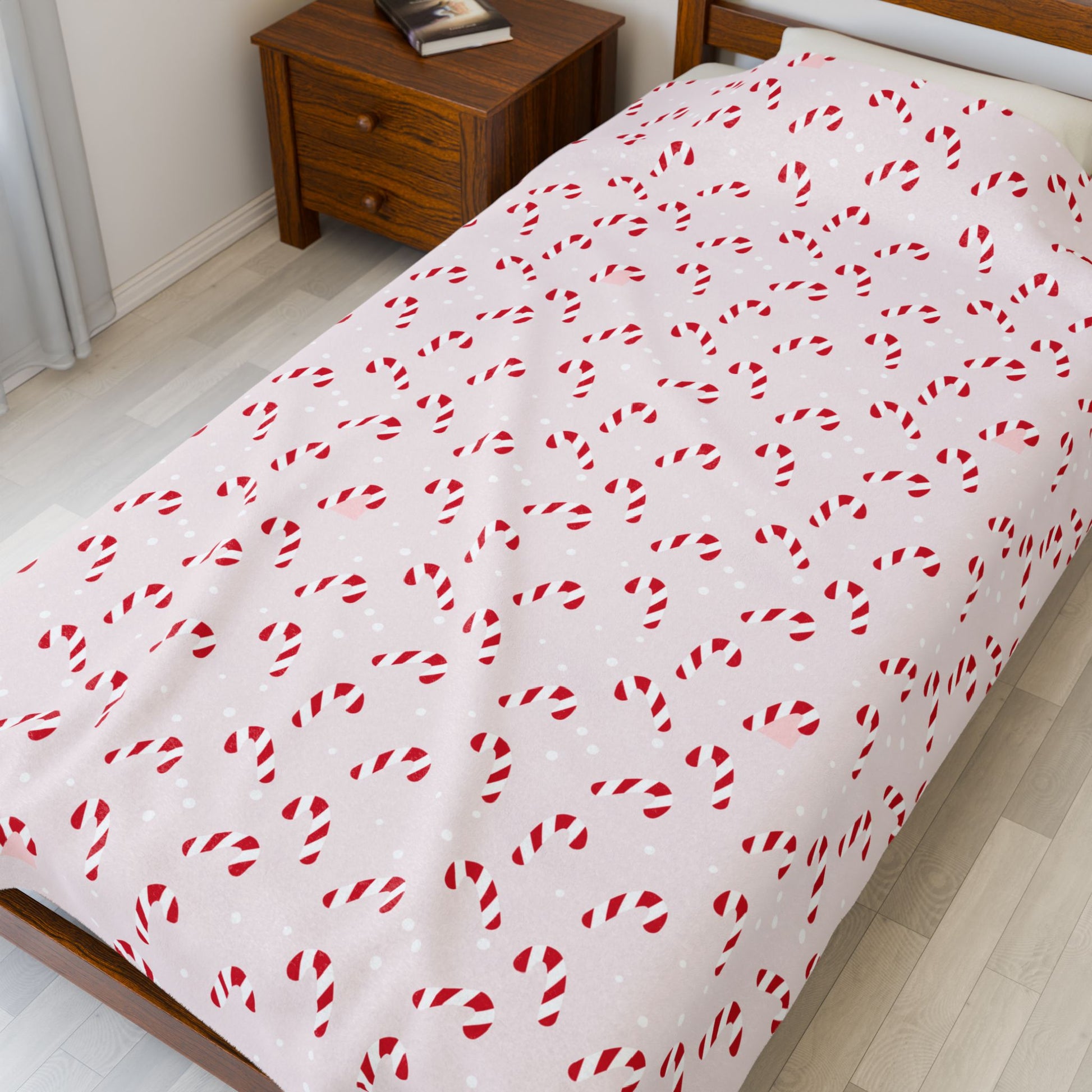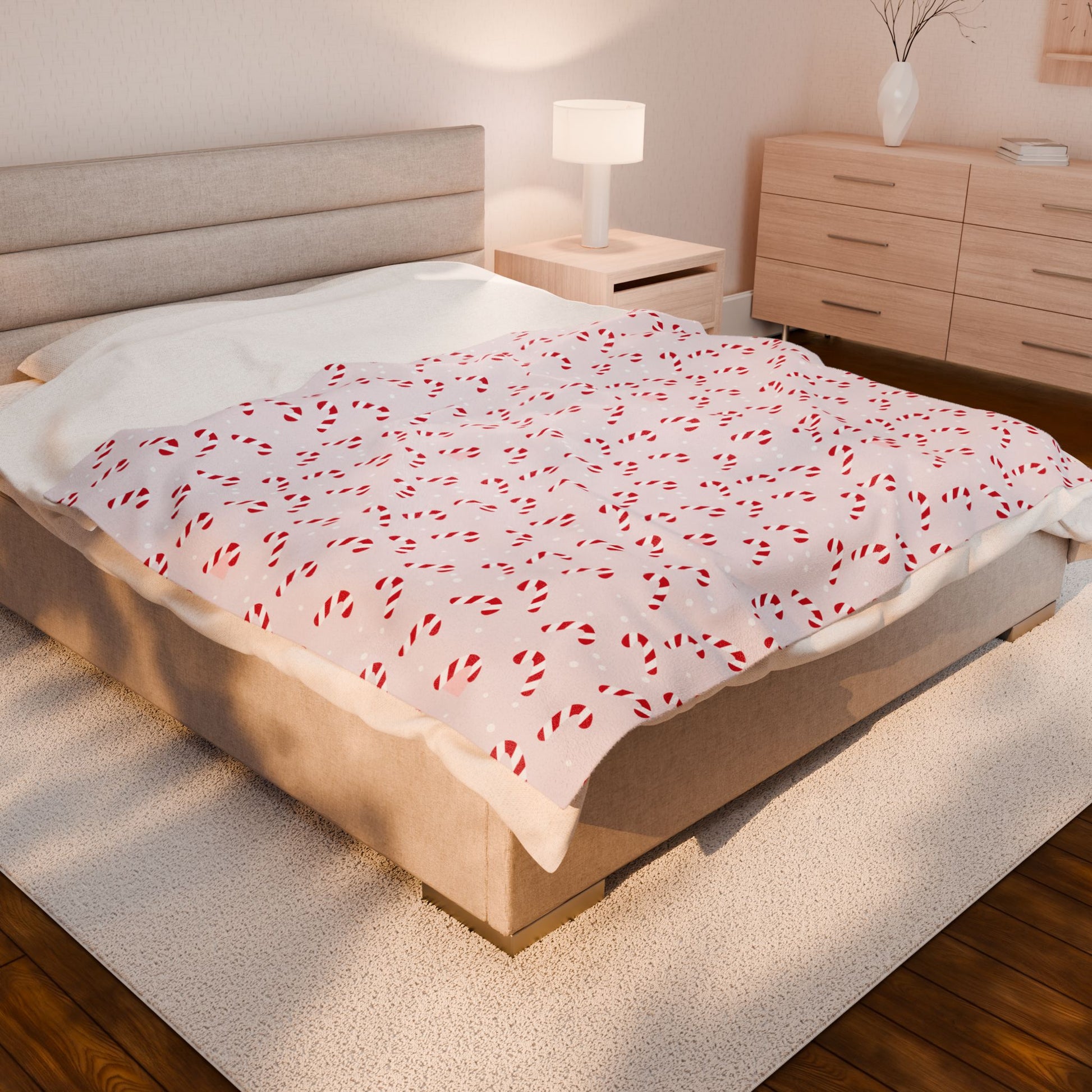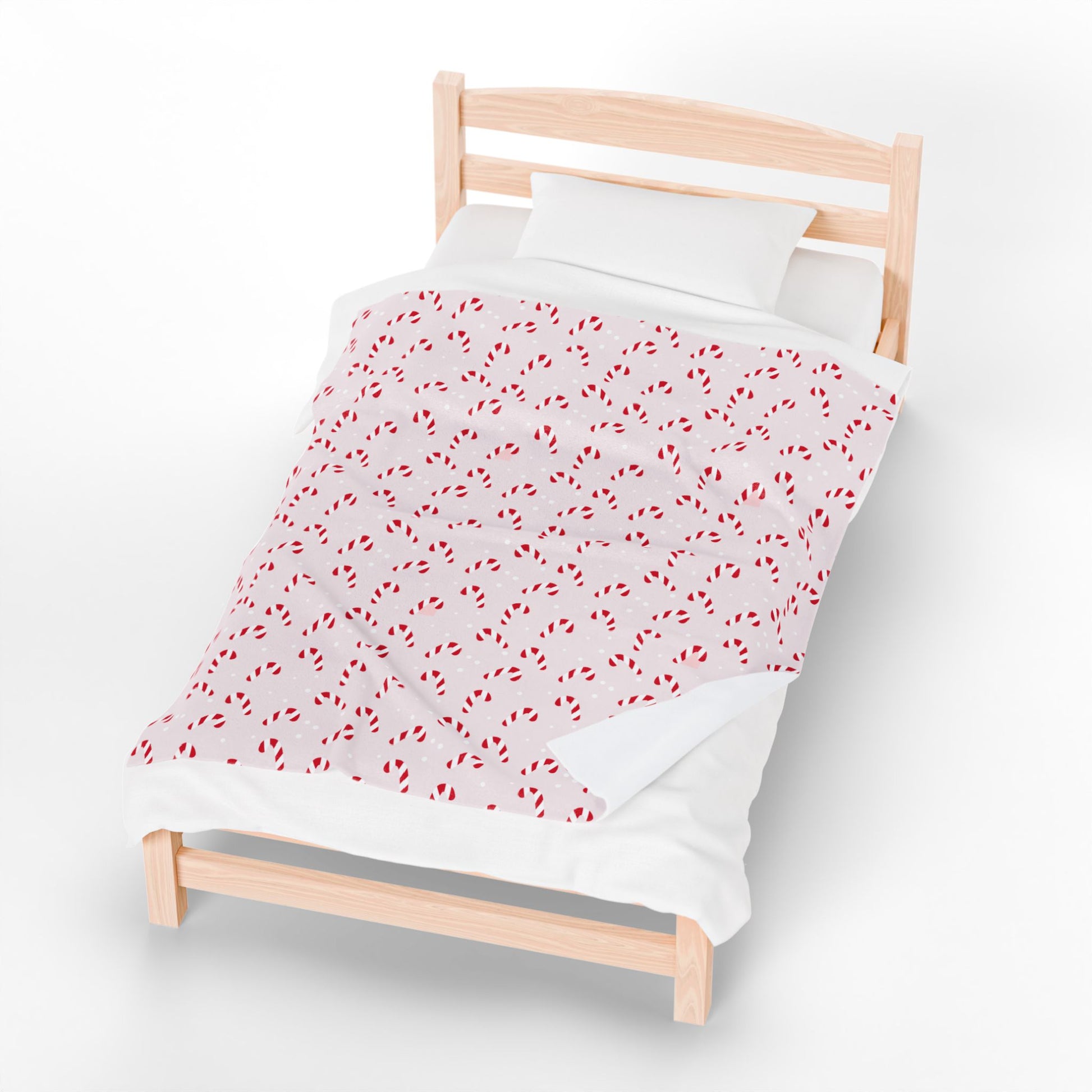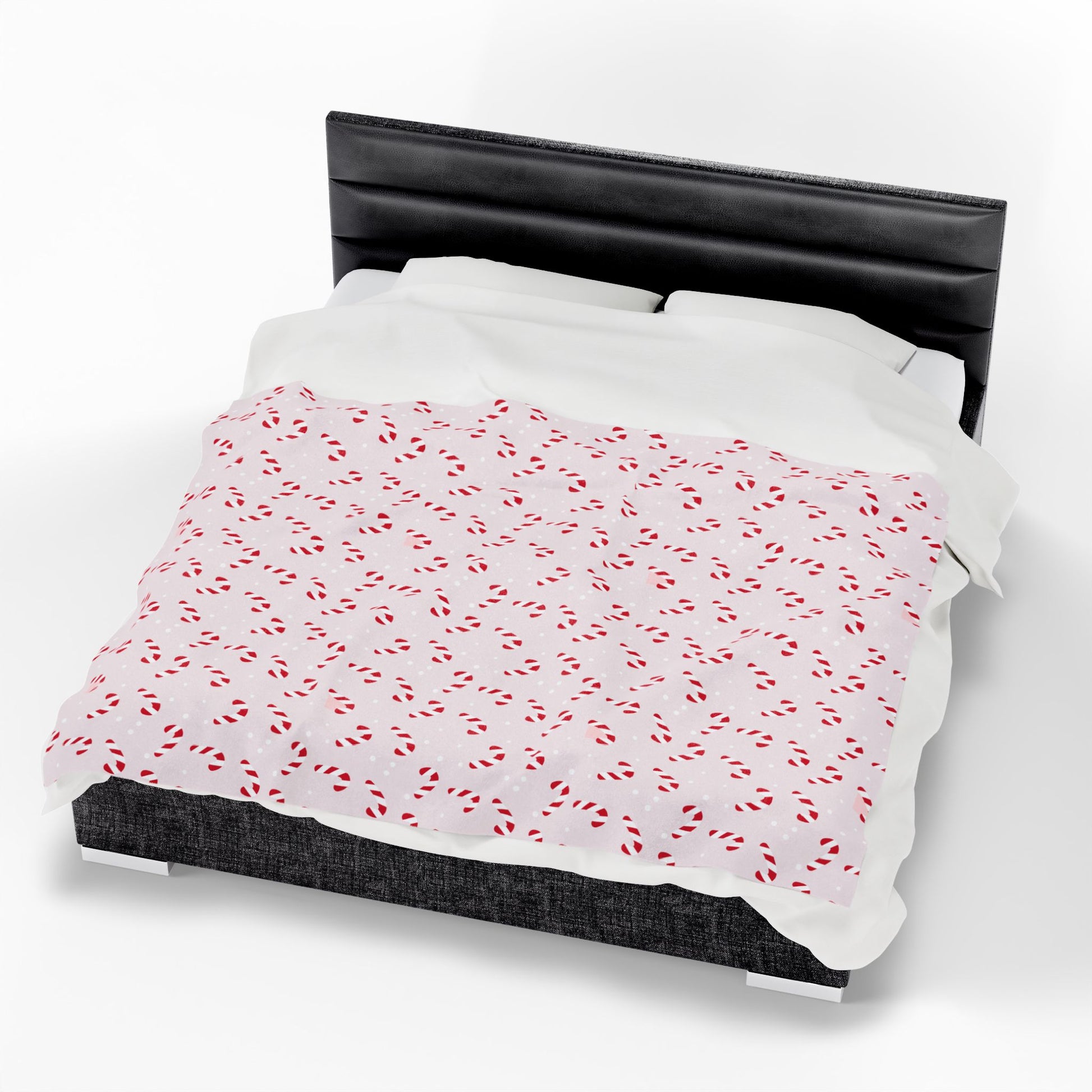 Pink Candy Cane Plush Blanket – Soft Cozy Winter Throw for Christmas Décor