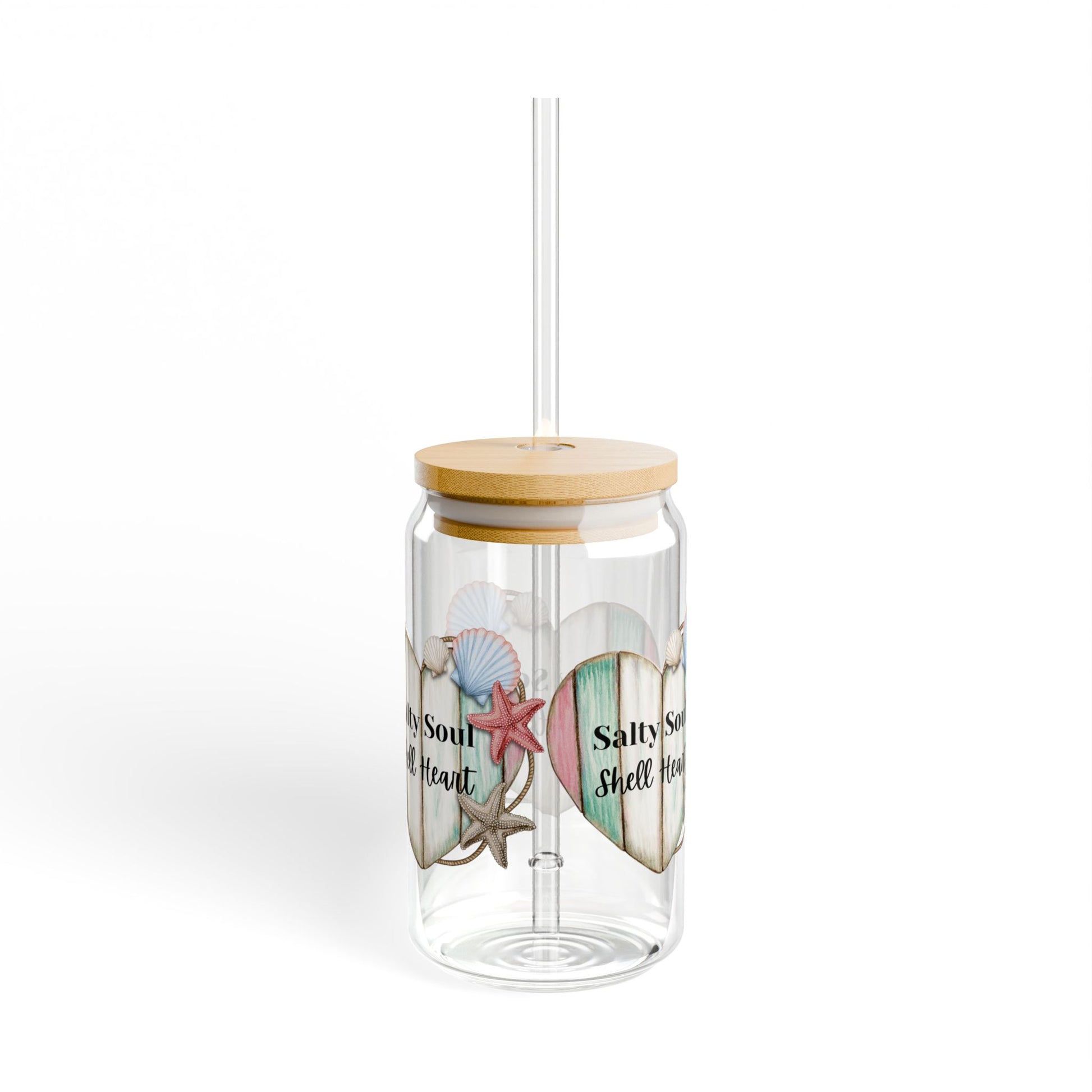 Salty Soul Sipper Glass with Straw, 16oz Beachy Drinkware, Summer Home Decor, Coastal Vibes, Gift for Ocean Lovers