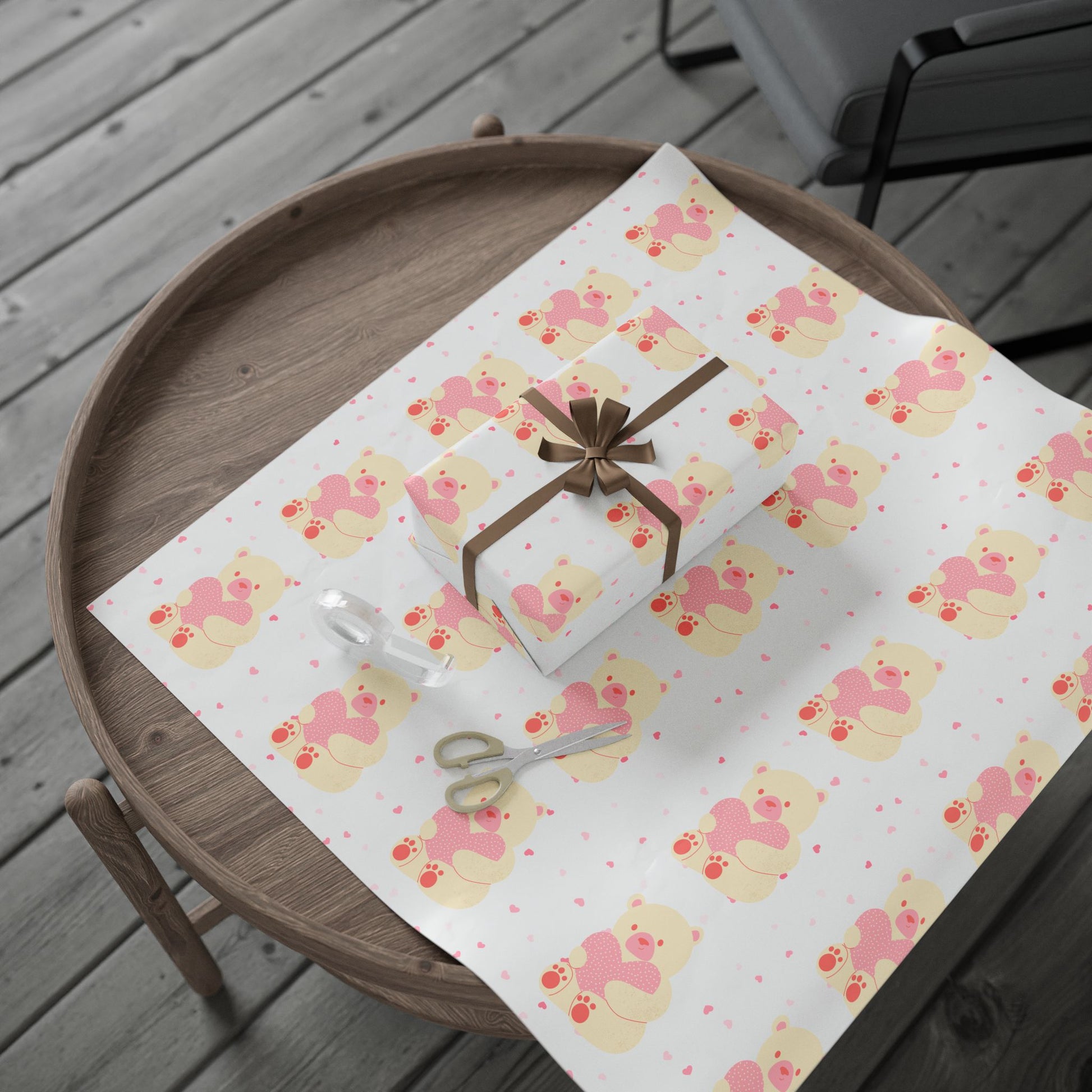 Teddy Bear Heart Wrapping Paper | Cute Valentine’s Gift Wrap