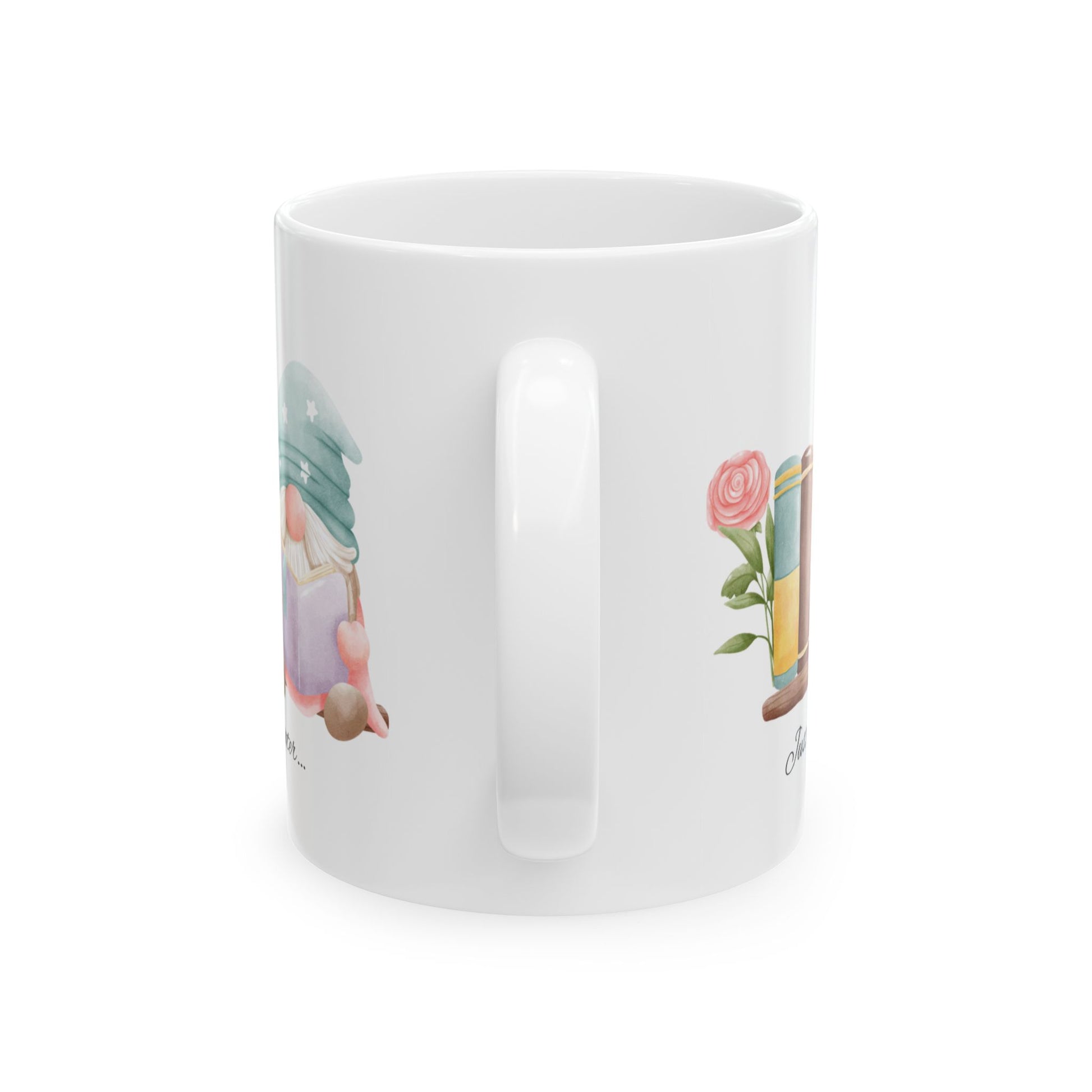 Whimsical Gnome Book Lover's Ceramic Mug, Perfect Gift for Readers, Cozy Vibes, Home Office Decor, Birthday, Book Club
