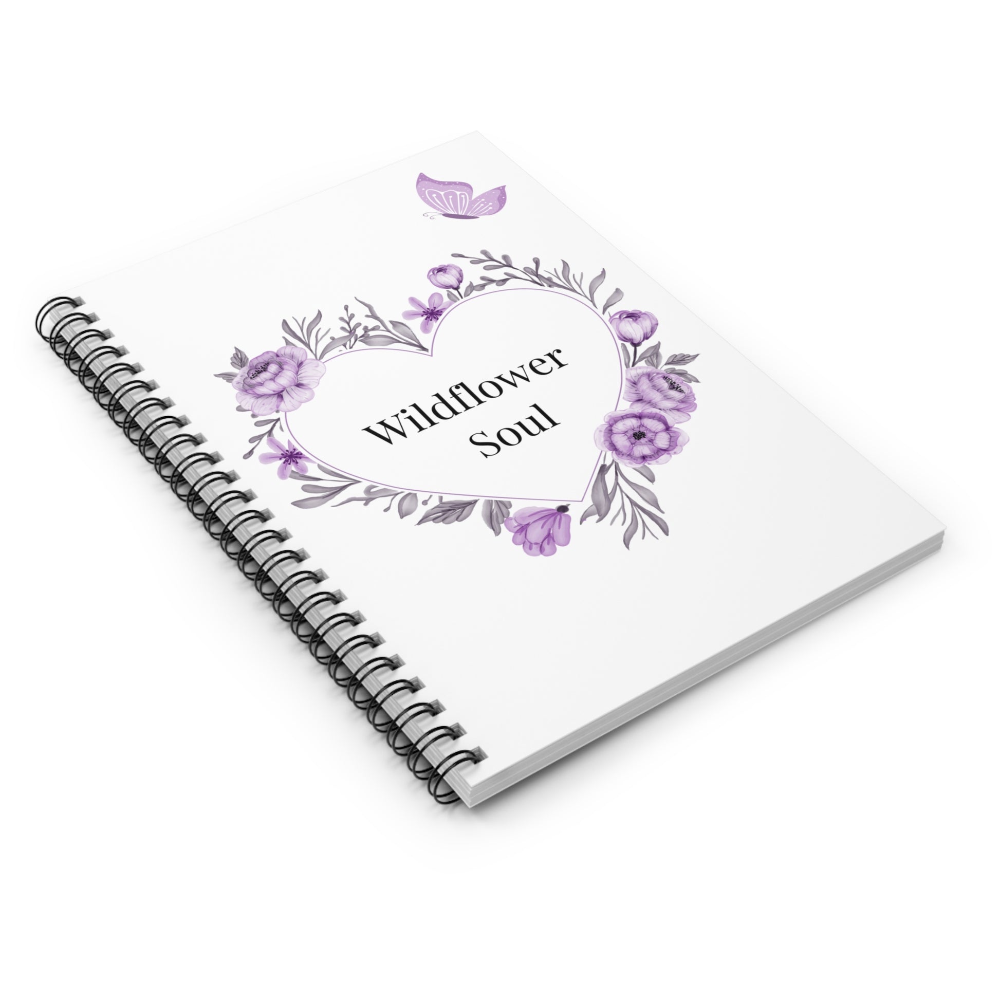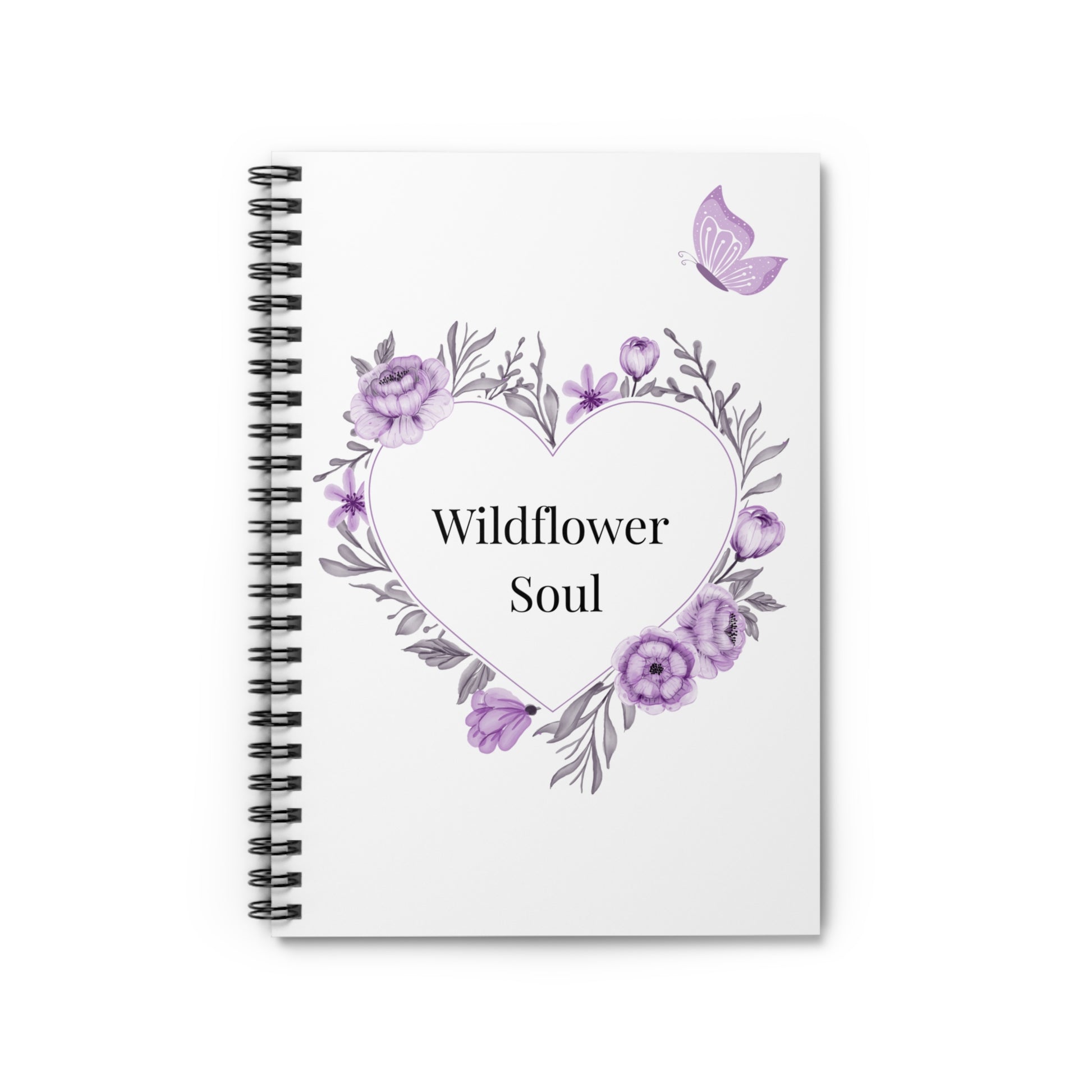 Wildflower Soul Notebook – Floral Heart Spiral Journal Let your thoughts bloom on every page with this Wildflower Soul spiral notebook. Featuring a delicate floral heart design and a gentle butterfly, it's a daily reminder to live gently, love deeply, and dream freely. With ruled pages and a sturdy spiral binding, it’s perfect for journaling, note-taking, or capturing daydreams wherever you go. Whether you're writing under the sun or curled up indoors, this notebook adds a soft, floral charm to your routine. Ideal for wildflower hearts, plant lovers, and free spirits, it’s more than just a notebook — it’s a quiet space to grow your ideas.