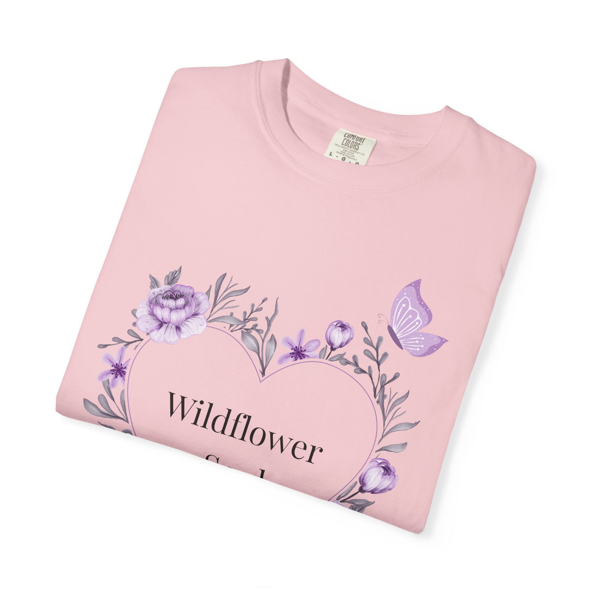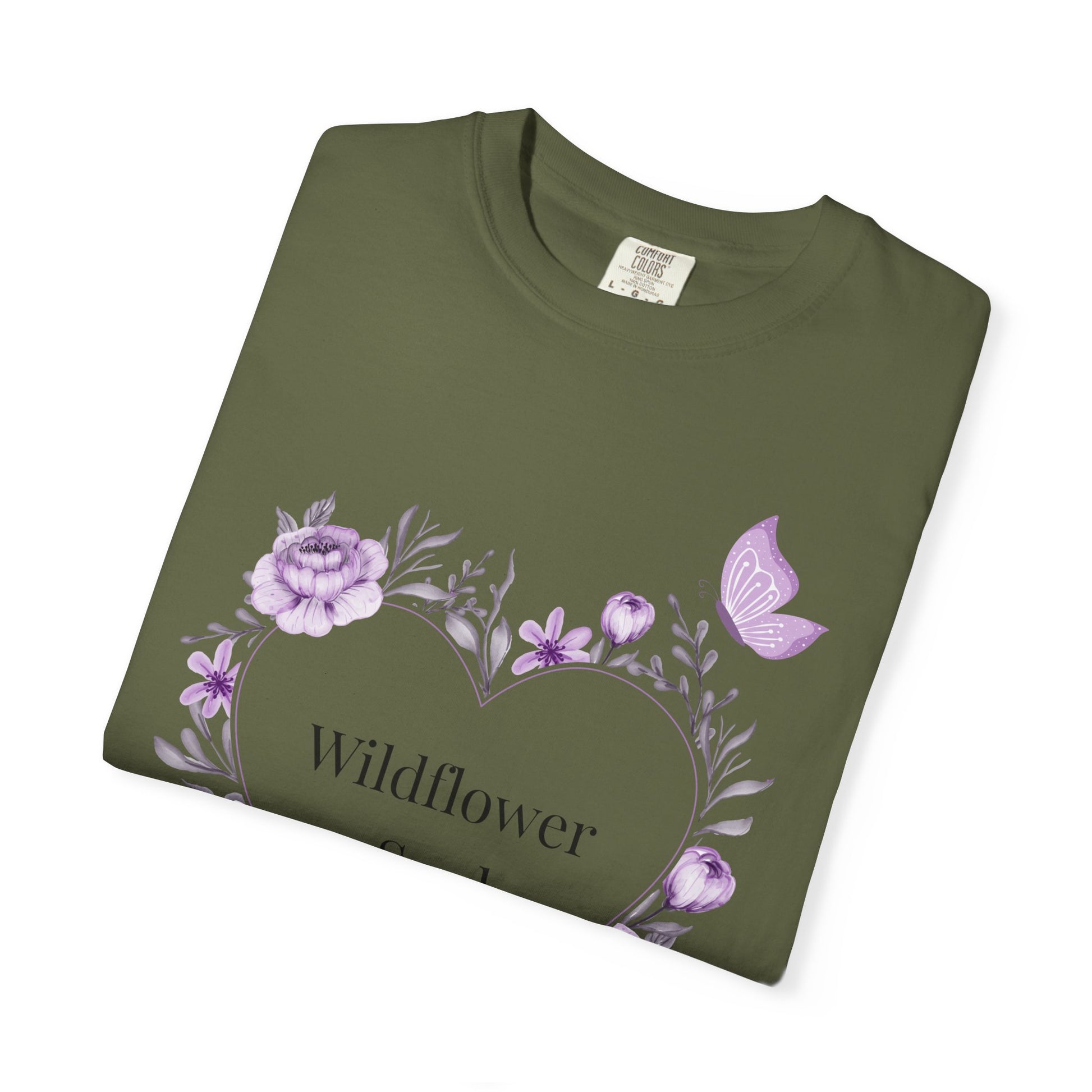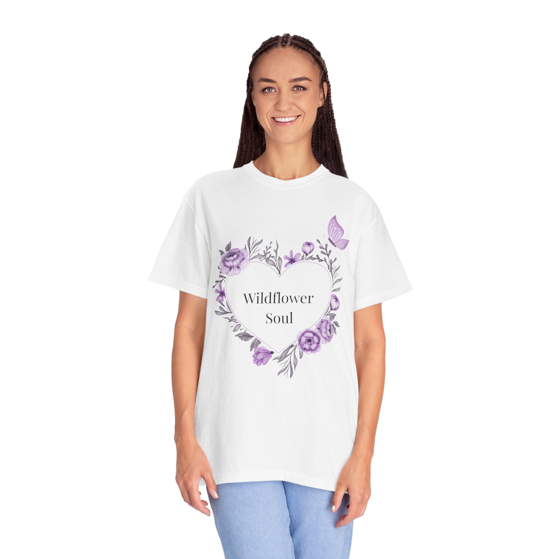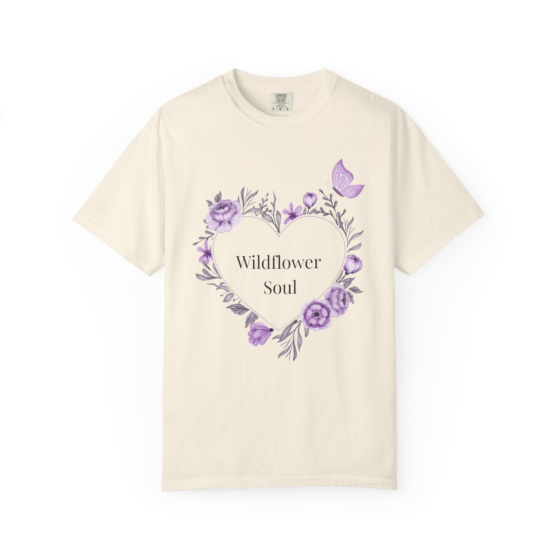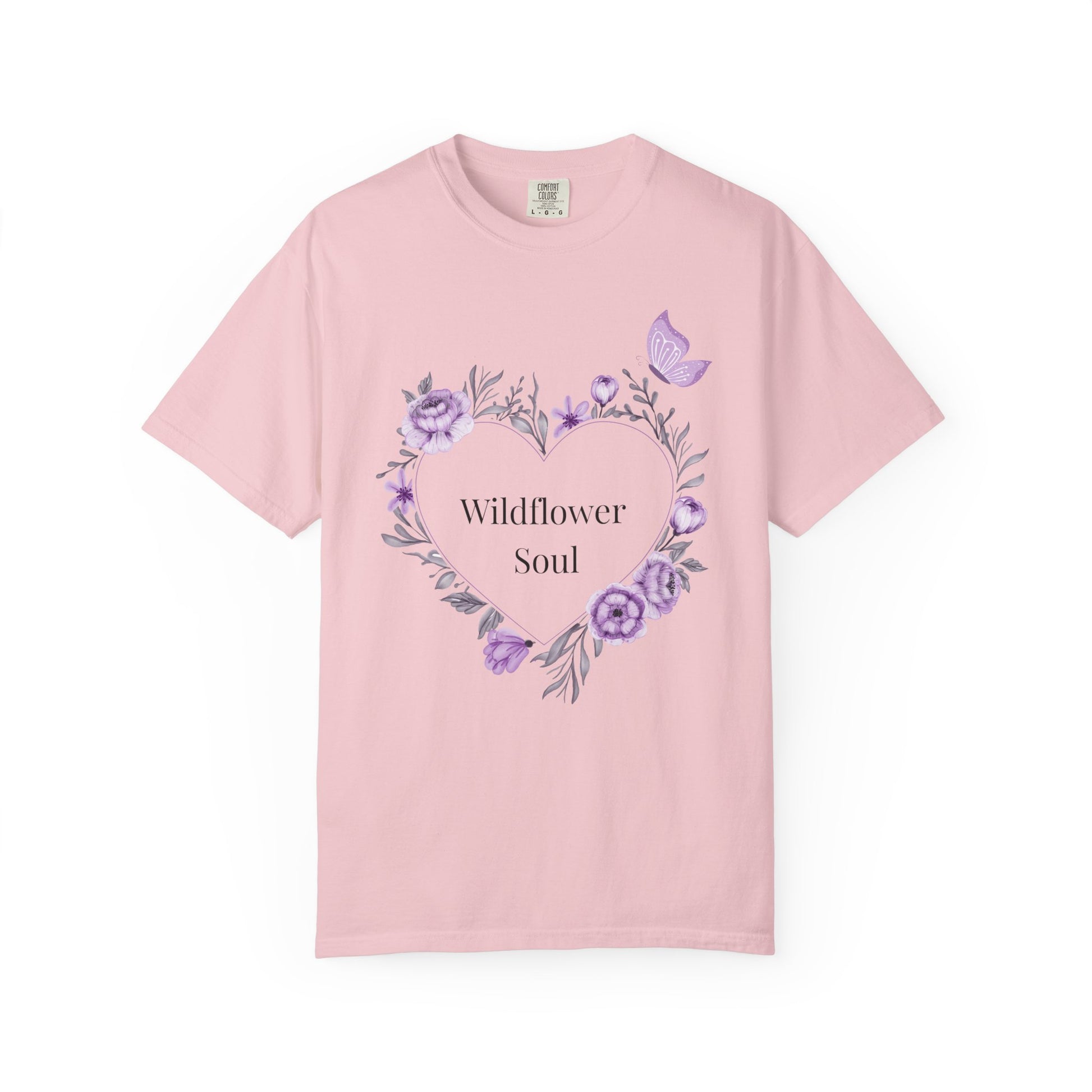 "Wildflower Soul" T-Shirt – Floral Heart Short Sleeve Tee Celebrate your free spirit with the Wildflower Soul tee — a soft, stylish tribute to nature lovers and daydreamers alike. This garment-dyed t-shirt is made from 100% US-grown cotton, offering a premium feel and all-day comfort you’ll never want to take off. With its relaxed fit and classic crew neckline, it’s effortlessly wearable — whether you're wandering through a wildflower field or sipping tea on the porch. The centerpiece? A delicate floral heart design touched by a beautiful butterfly captures the quiet beauty of wild blooms, perfect for those who live gently and dream boldly. Available in a gorgeous range of colors, this tee lets you express your personal style while staying cozy and confident. 🎁 Great gift idea for birthdays, Mother’s Day, or just because — especially for plant lovers, romantics, and free spirits.
